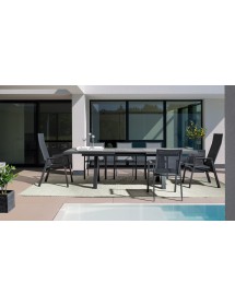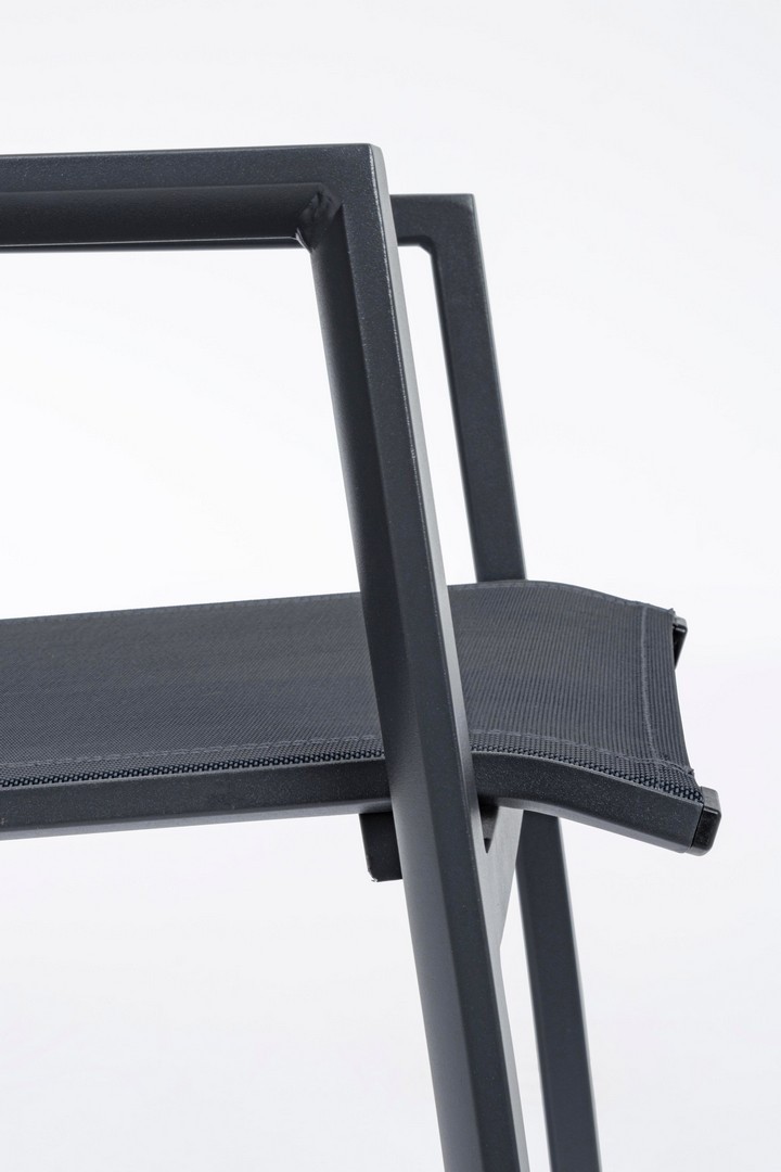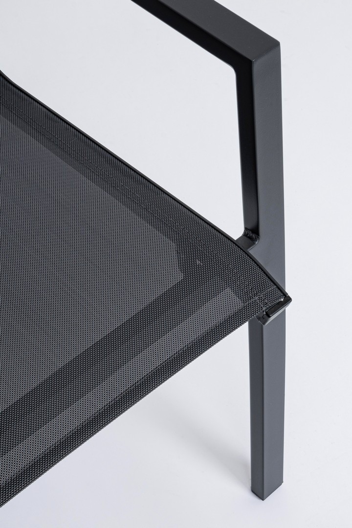 STRUTTURA IN ALLUMINIO VERNICIATA A POLVERE (POLIESTERE). RIVESTIMENTO IN TEXTILENE 1X1. IMPILABILE.