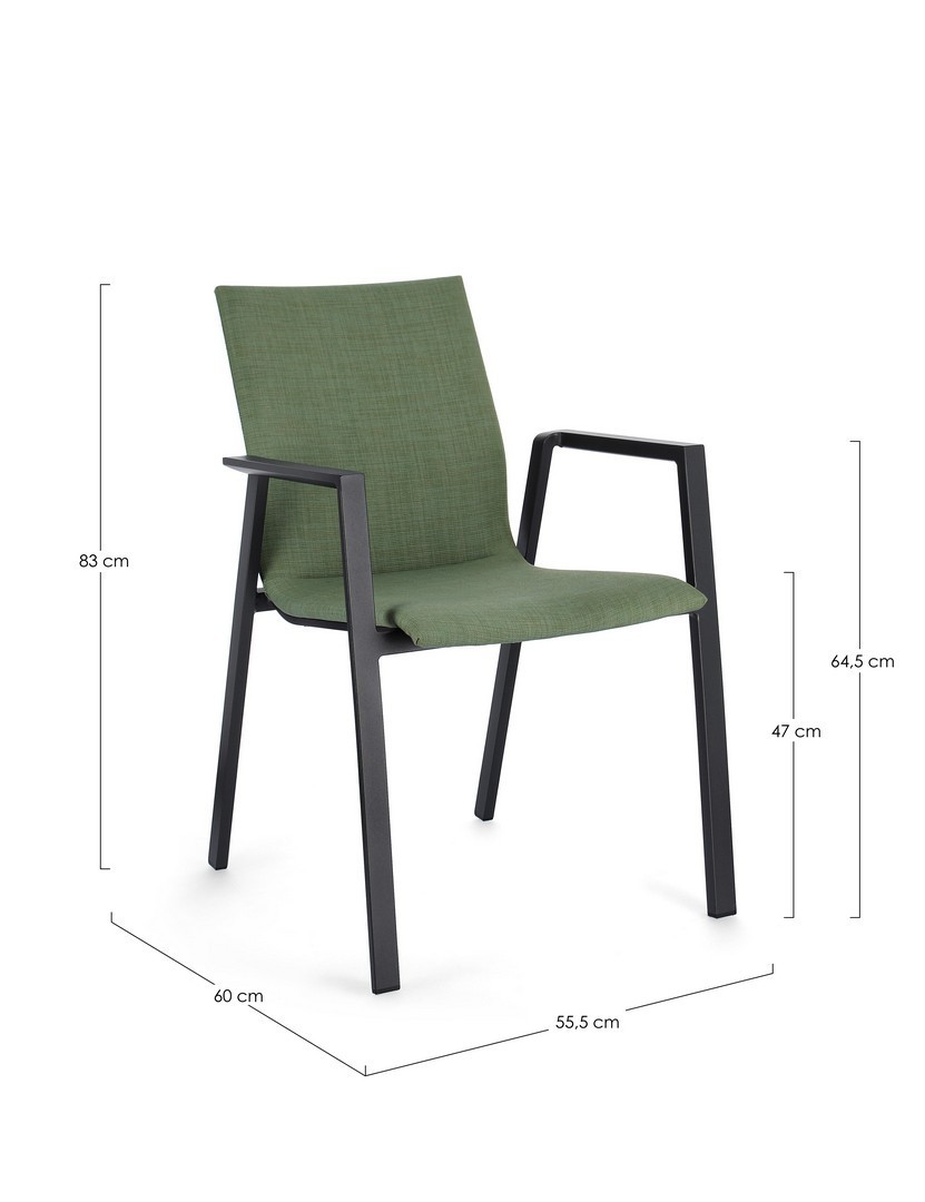 STRUTTURA IN ALLUMINIO VERNICIATA A POLVERE (POLIESTERE). RIVESTIMENTO CON TESSUTO IDROREPELLENTE MISTO (70% TEXTILENE, 30% OLEFIN). IMBOTTITURA PER ESTERNO FAST DRY FOAM. IMPILABILE. IMBALLO SENZA CARTONE.