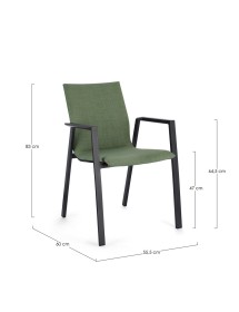 STRUTTURA IN ALLUMINIO VERNICIATA A POLVERE (POLIESTERE). RIVESTIMENTO CON TESSUTO IDROREPELLENTE MISTO (70% TEXTILENE, 30% OLEFIN). IMBOTTITURA PER ESTERNO FAST DRY FOAM. IMPILABILE. IMBALLO SENZA CARTONE.