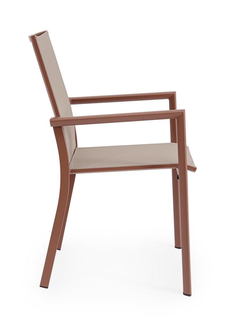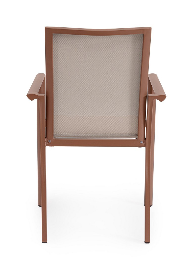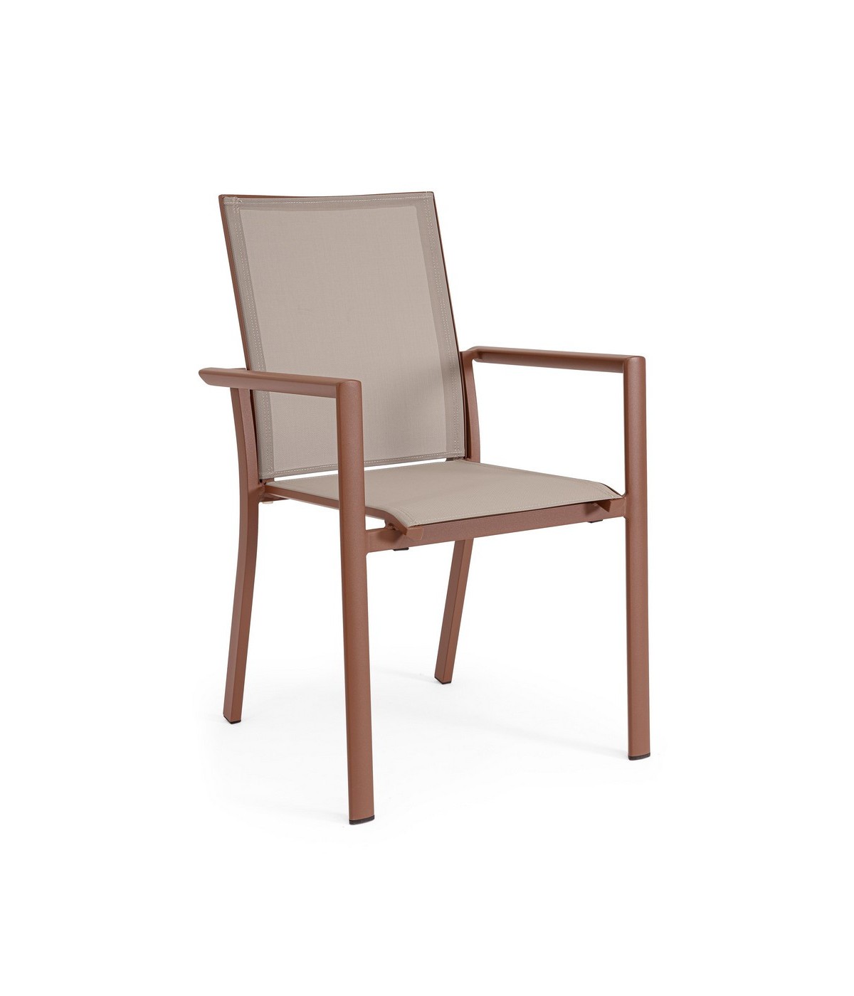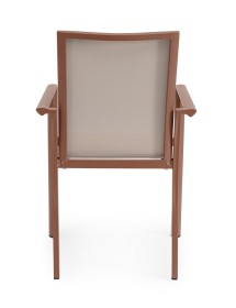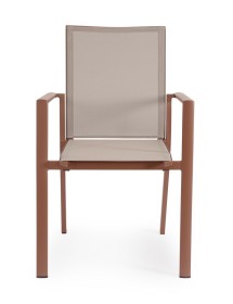 STRUTTURA IN ALLUMINIO, VERNICIATO A POLVERE (POLIESTERE). SEDUTA E SCHIENALE IN TEXTILENE 1X1. IMPILABILE. IMBALLO SENZA CARTONE.