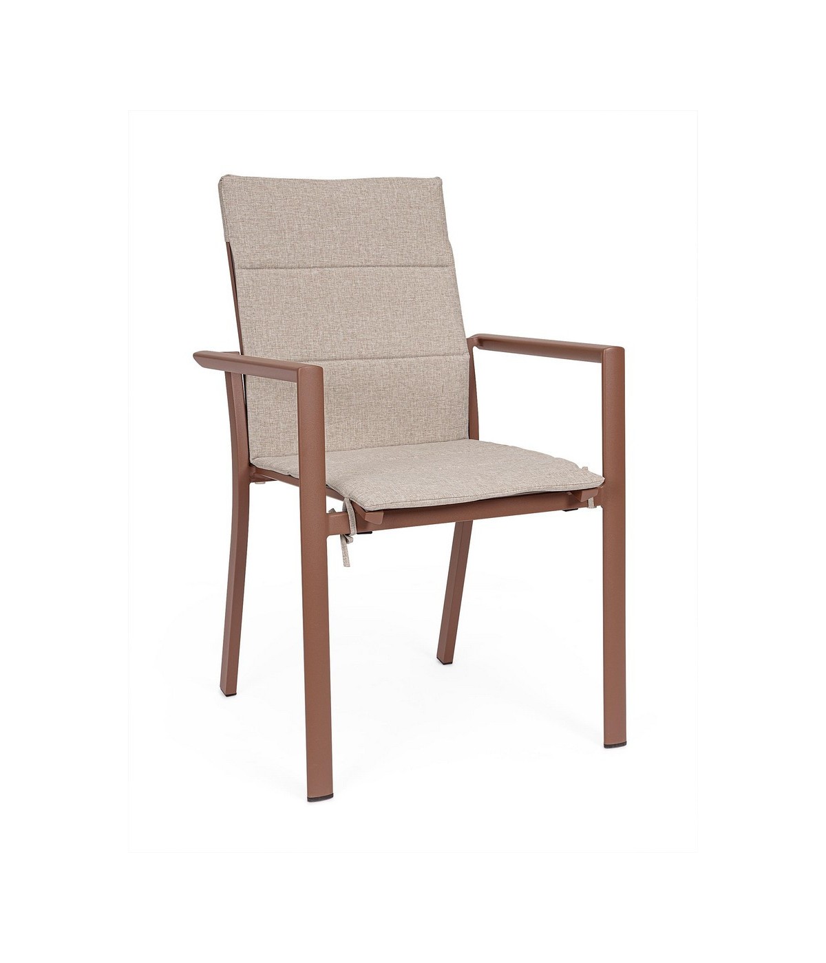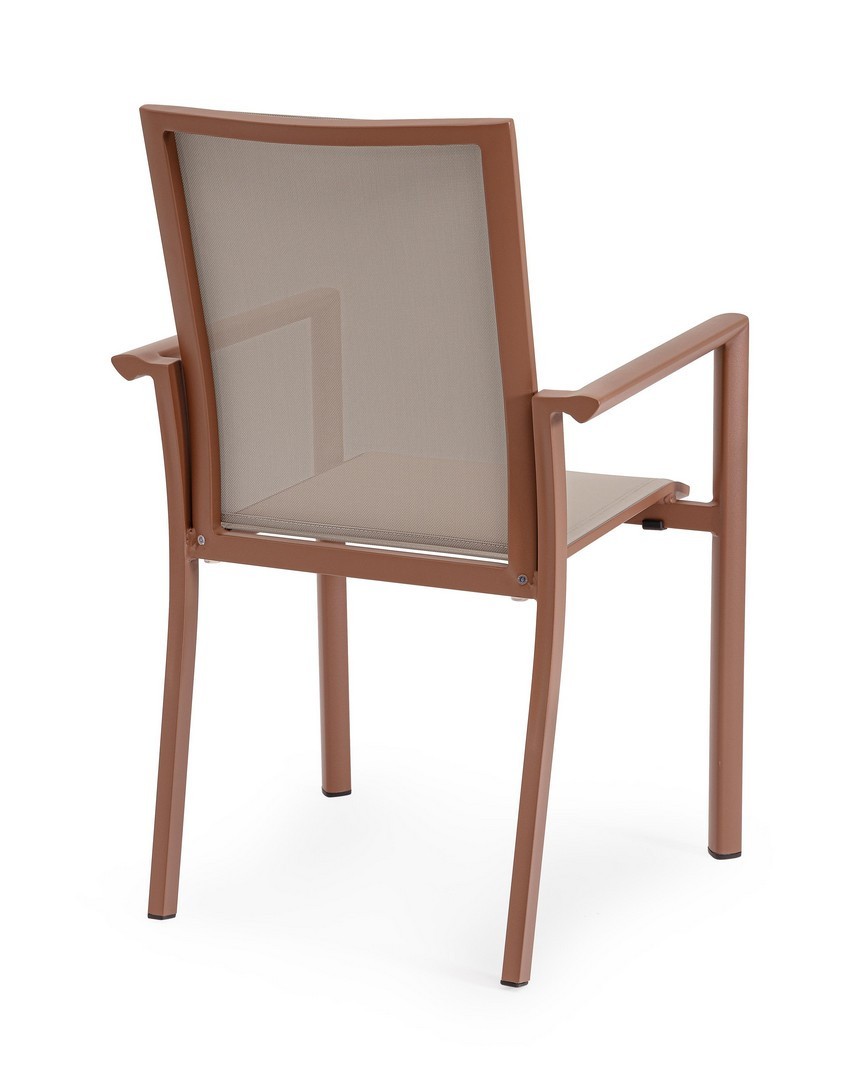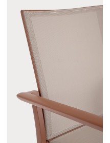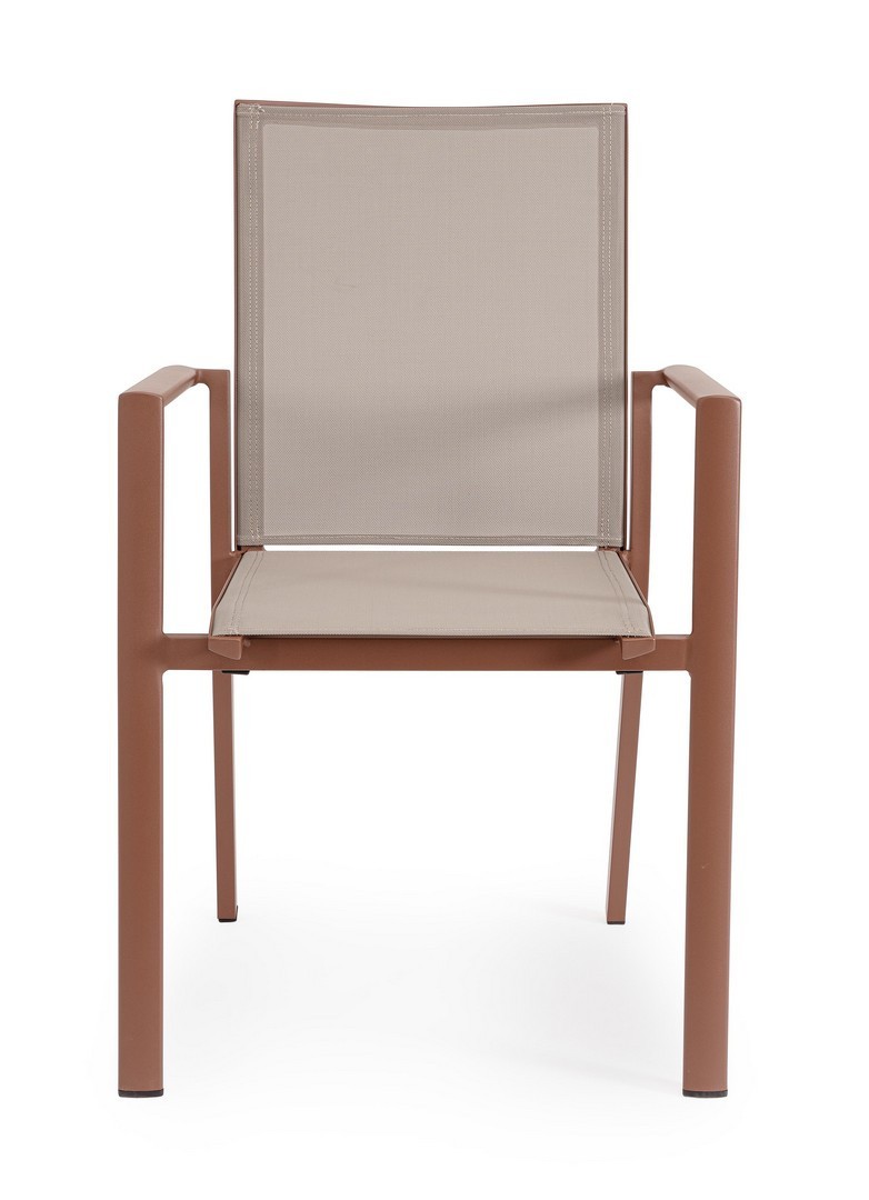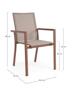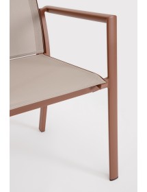 STRUTTURA IN ALLUMINIO, VERNICIATO A POLVERE (POLIESTERE). SEDUTA E SCHIENALE IN TEXTILENE 1X1. IMPILABILE.