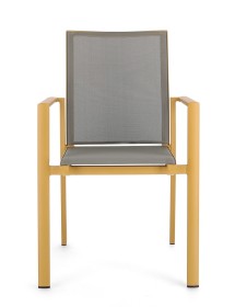STRUTTURA IN ALLUMINIO, VERNICIATO A POLVERE (POLIESTERE). SEDUTA E SCHIENALE IN TEXTILENE 1X1. IMPILABILE. IMBALLO SENZA CARTONE.