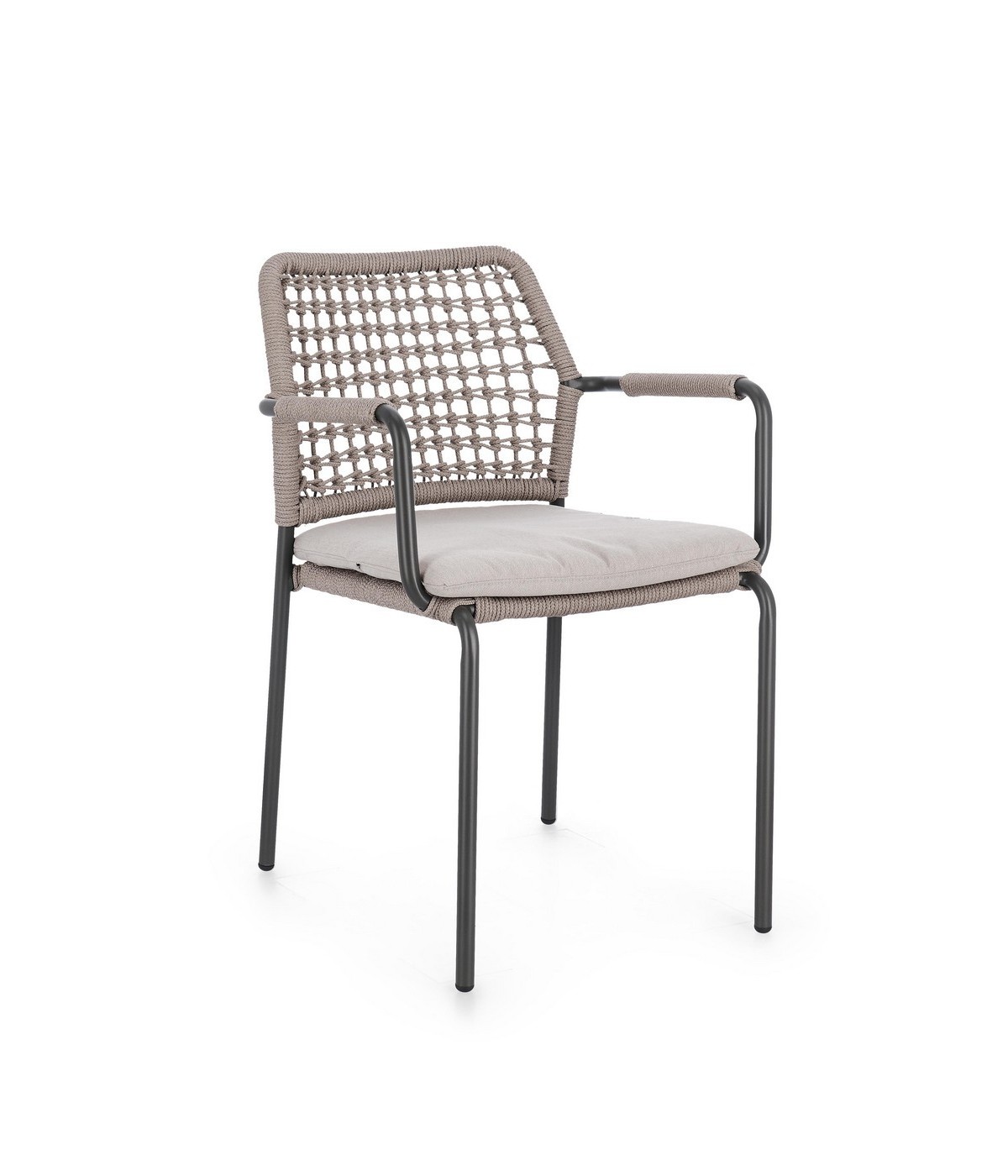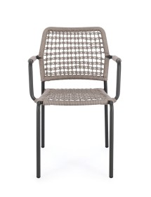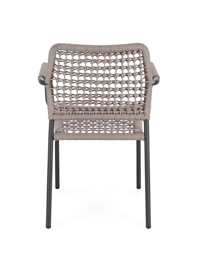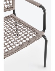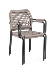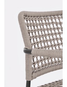 STRUTTURA IN ALLUMINIO VERNICIATA A POLVERE (POLIESTERE). INTRECCIO PER ESTERNO IN CORDA POLIESTERE. IMPILABILE. IMBALLO SENZA CARTONE.
