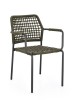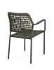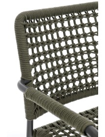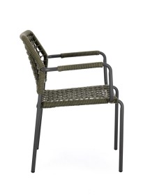 STRUTTURA IN ALLUMINIO VERNICIATA A POLVERE (POLIESTERE). INTRECCIO PER ESTERNO IN CORDA OLEFIN (POLIPROPILENE). IMPILABILE.
