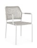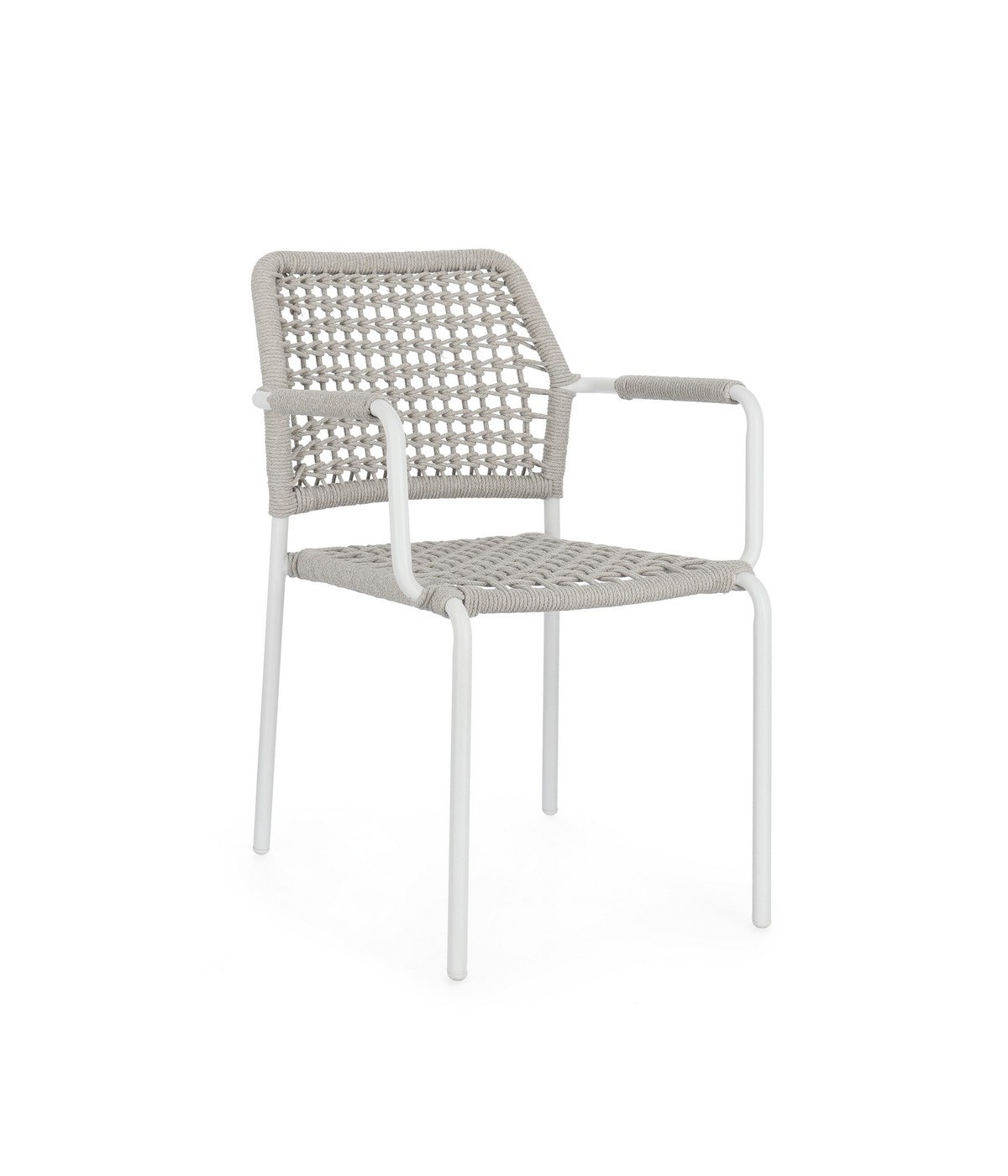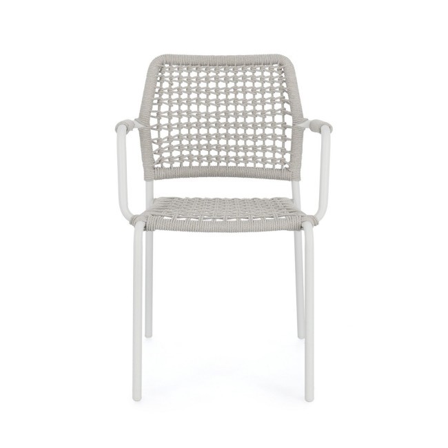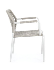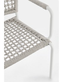 STRUTTURA IN ALLUMINIO VERNICIATA A POLVERE (POLIESTERE). INTRECCIO PER ESTERNO IN CORDA POLIESTERE. IMPILABILE.