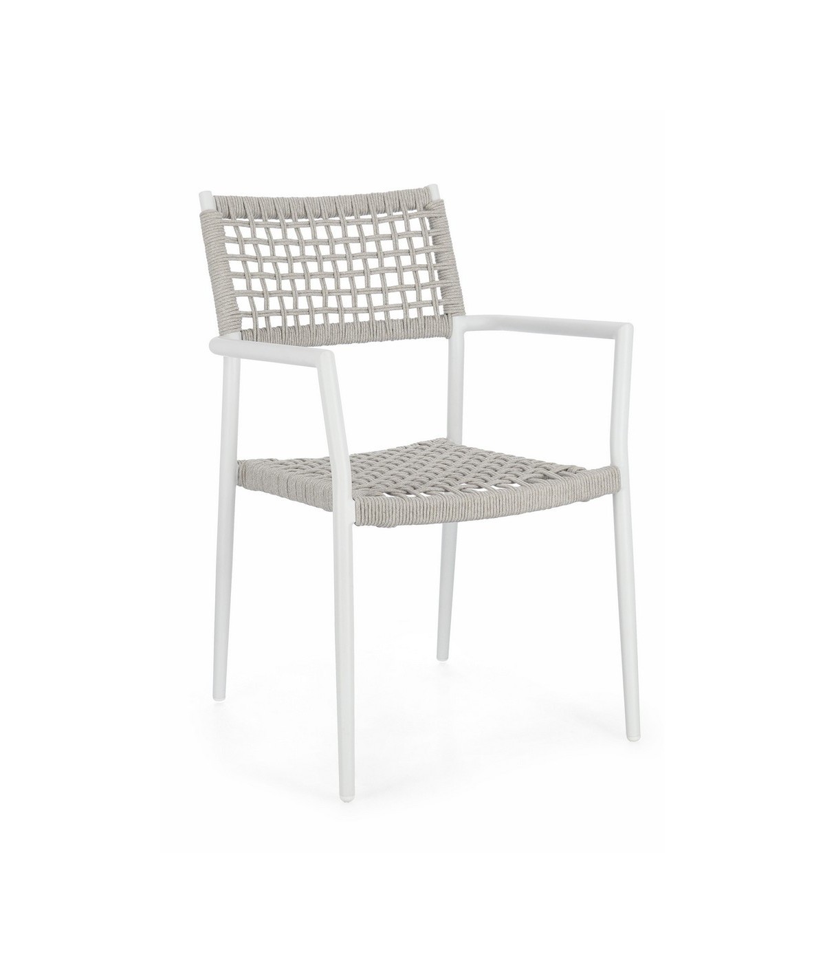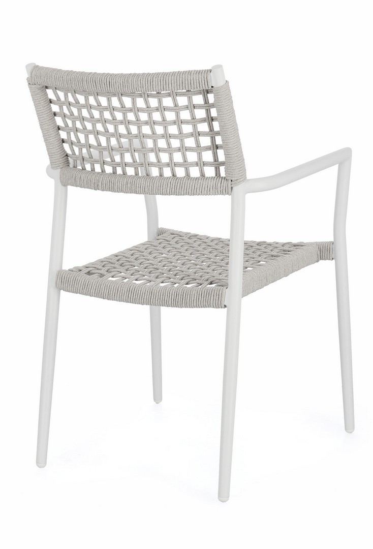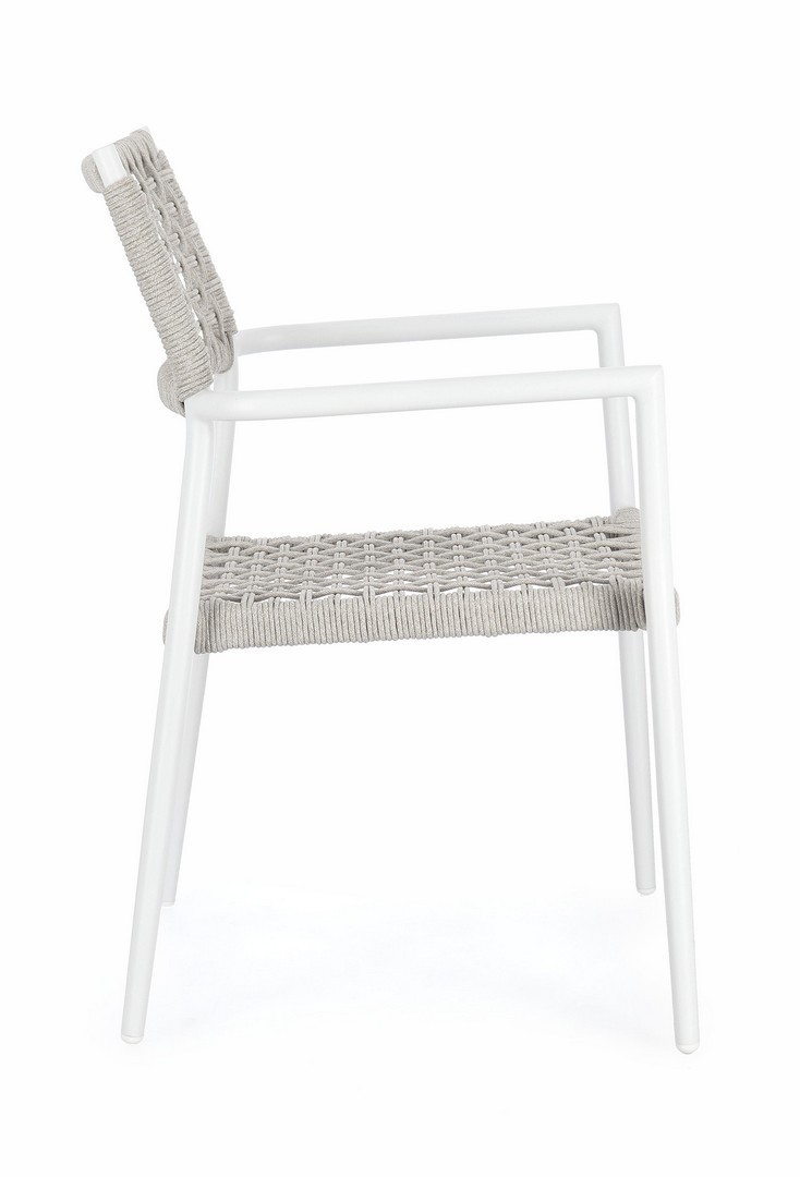 STRUTTURA IN ALLUMINIO VERNICIATA A POLVERE (POLIESTERE). INTRECCIO PER ESTERNO IN CORDA POLIESTERE. IMBALLO SENZA CARTONE.