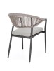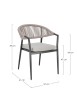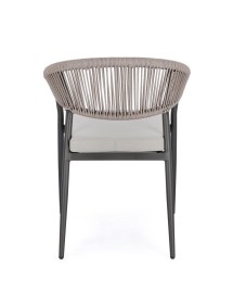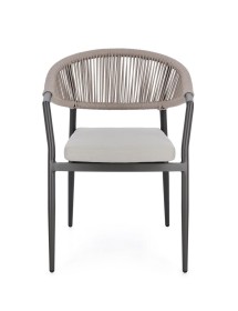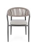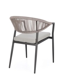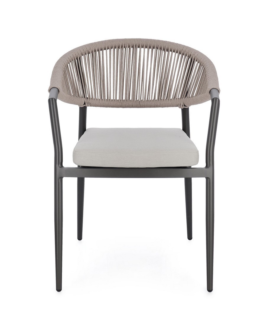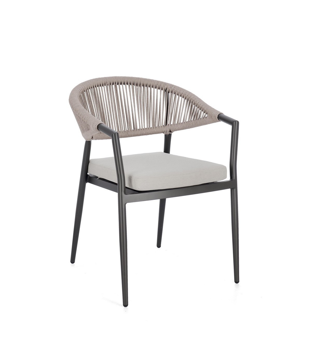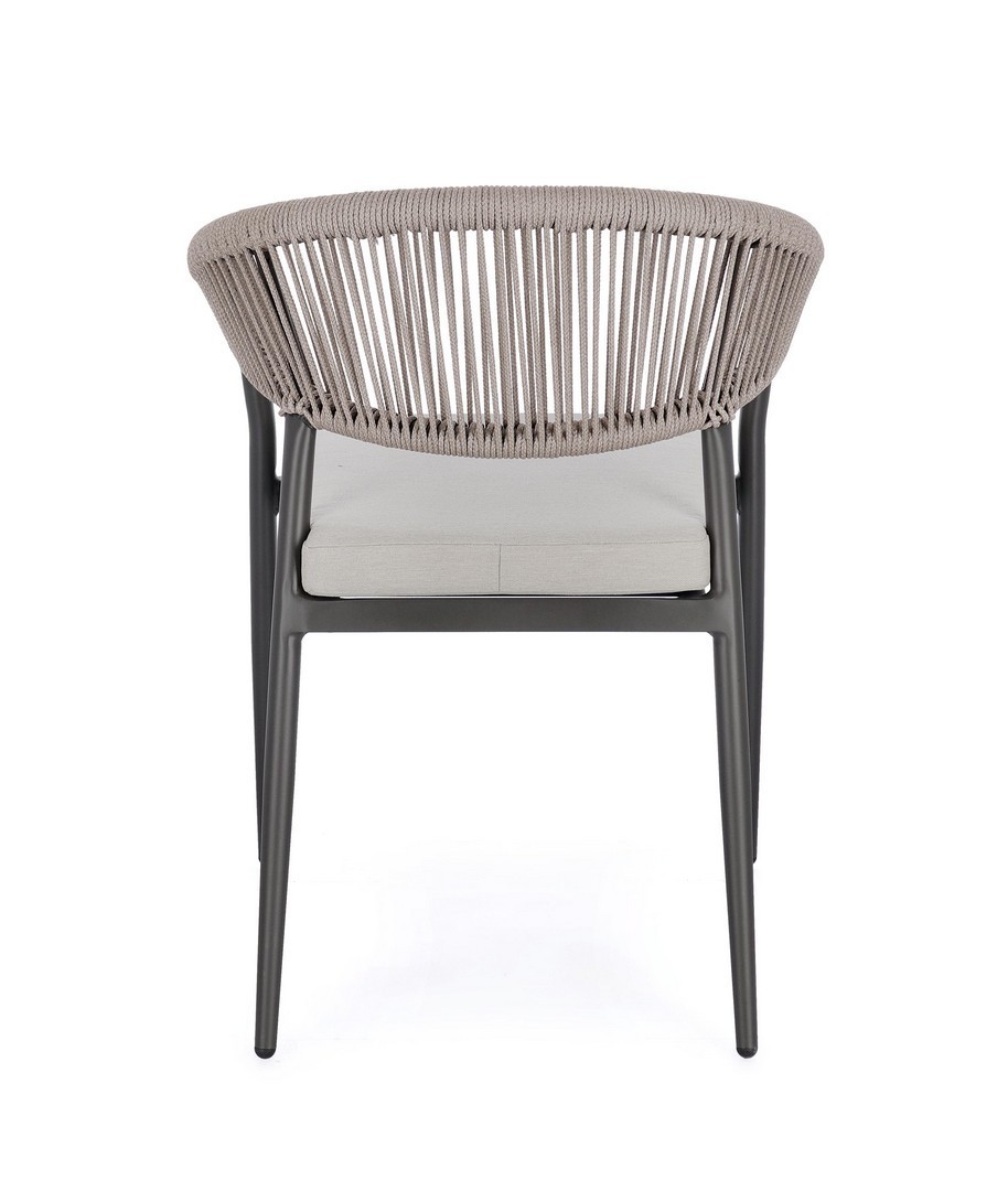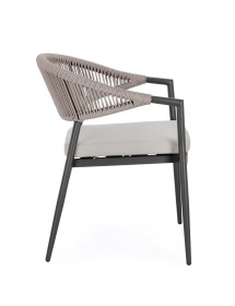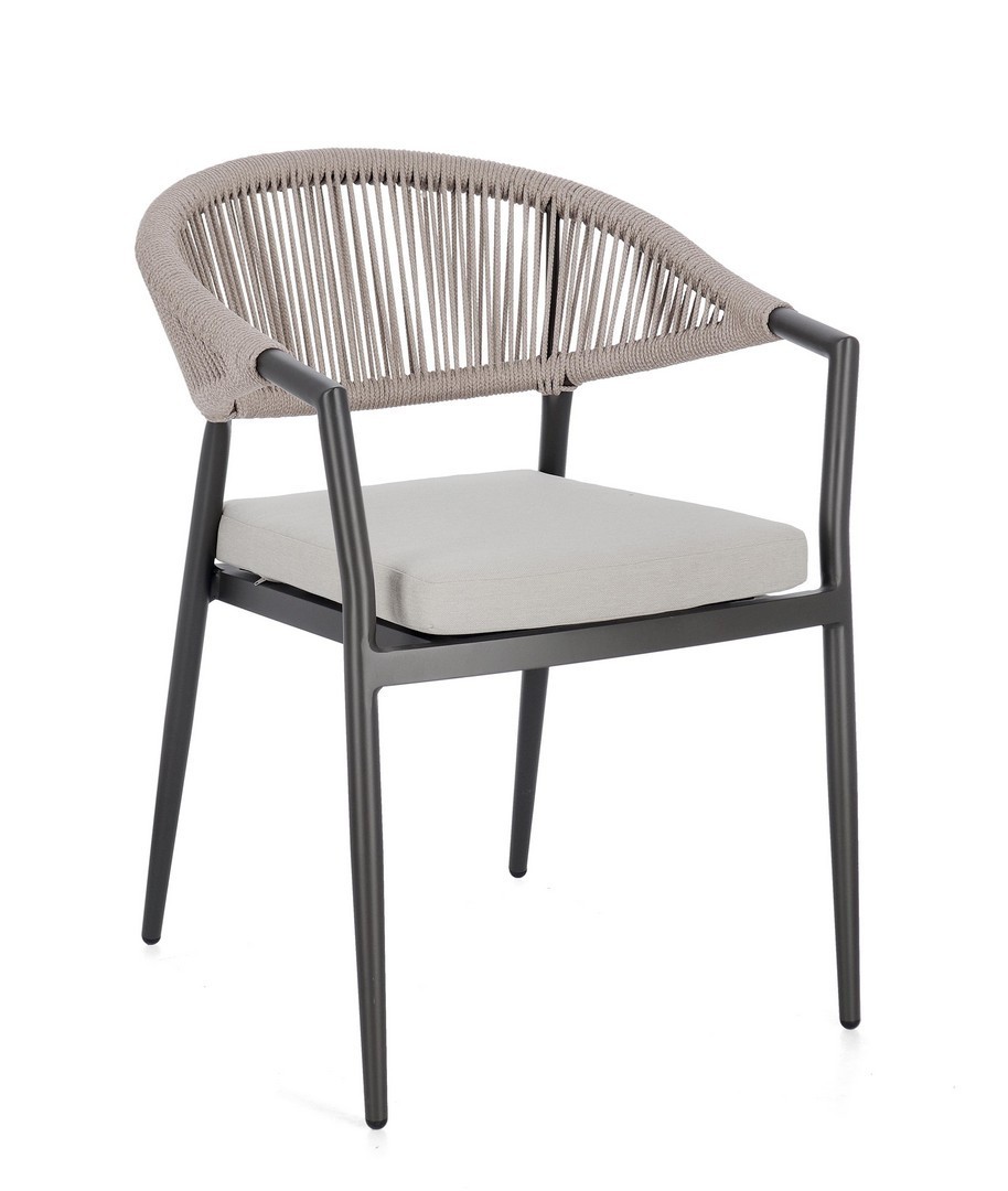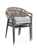 STRUTTURA IN ALLUMINIO VERNICIATA A POLVERE (POLIESTERE). INTRECCIO PER ESTERNO IN CORDA POLIESTERE. CUSCINI SFODERABILI IN TESSUTO IDROREPELLENTE 100% POLIESTERE. IMPILABILE.