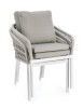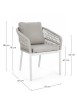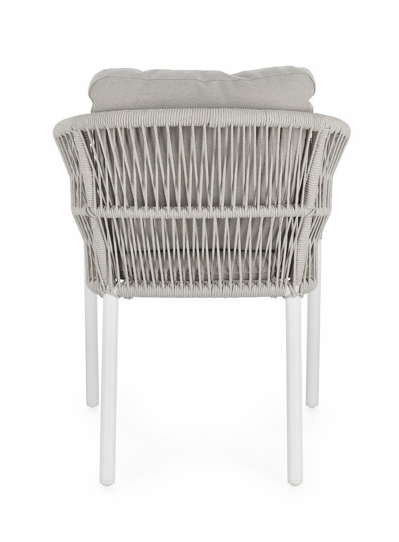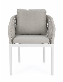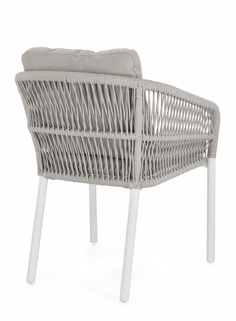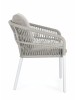 STRUTTURA IN ALLUMINIO VERNICIATA A POLVERE (POLIESTERE). INTRECCIO PER ESTERNO IN CORDA POLIESTERE. CUSCINI SFODERABILI IN TESSUTO IDROREPELLENTE 100% POLIESTERE. IMPILABILE.