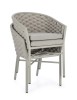 STRUTTURA IN ALLUMINIO VERNICIATA A POLVERE (POLIESTERE). INTRECCIO PER ESTERNO IN CORDA POLIESTERE IMBOTTITA IN GOMMA (POLIETILENE). CUSCINI SFODERABILI IN TESSUTO IDROREPELLENTE 100% POLIESTERE. IMPILABILE.