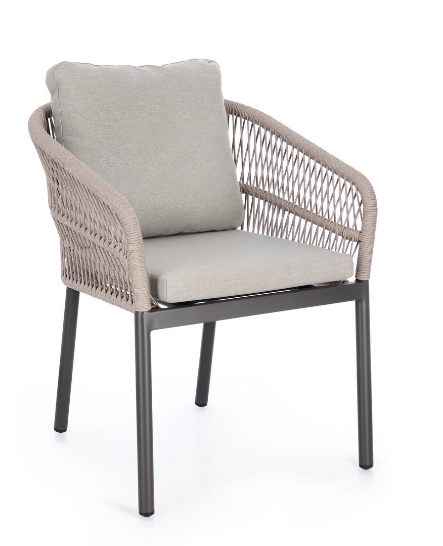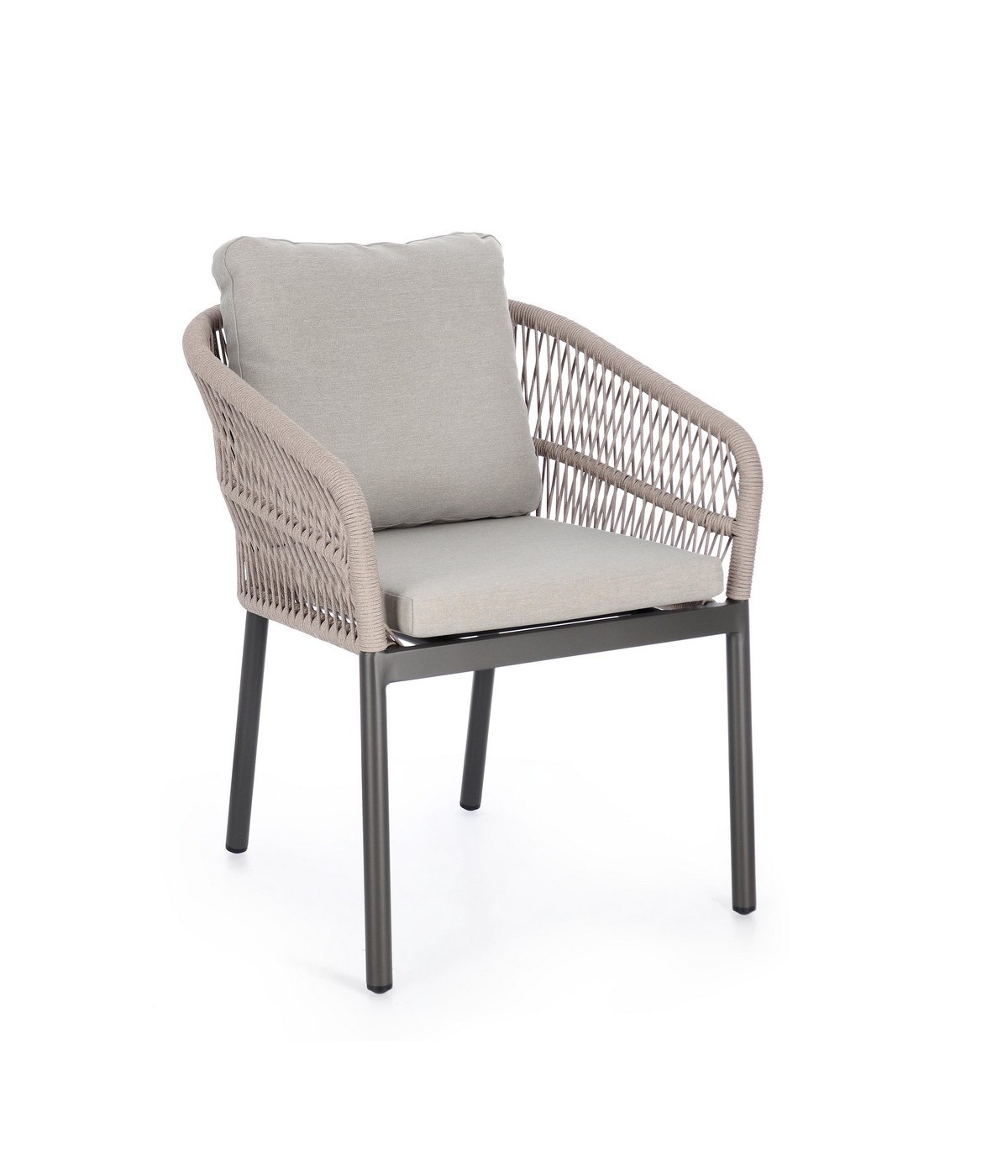 STRUTTURA IN ALLUMINIO VERNICIATA A POLVERE (POLIESTERE). INTRECCIO PER ESTERNO IN CORDA POLIESTERE. CUSCINI SFODERABILI IN TESSUTO IDROREPELLENTE 100% POLIESTERE. IMPILABILE. IMBALLO SENZA CARTONE.