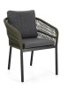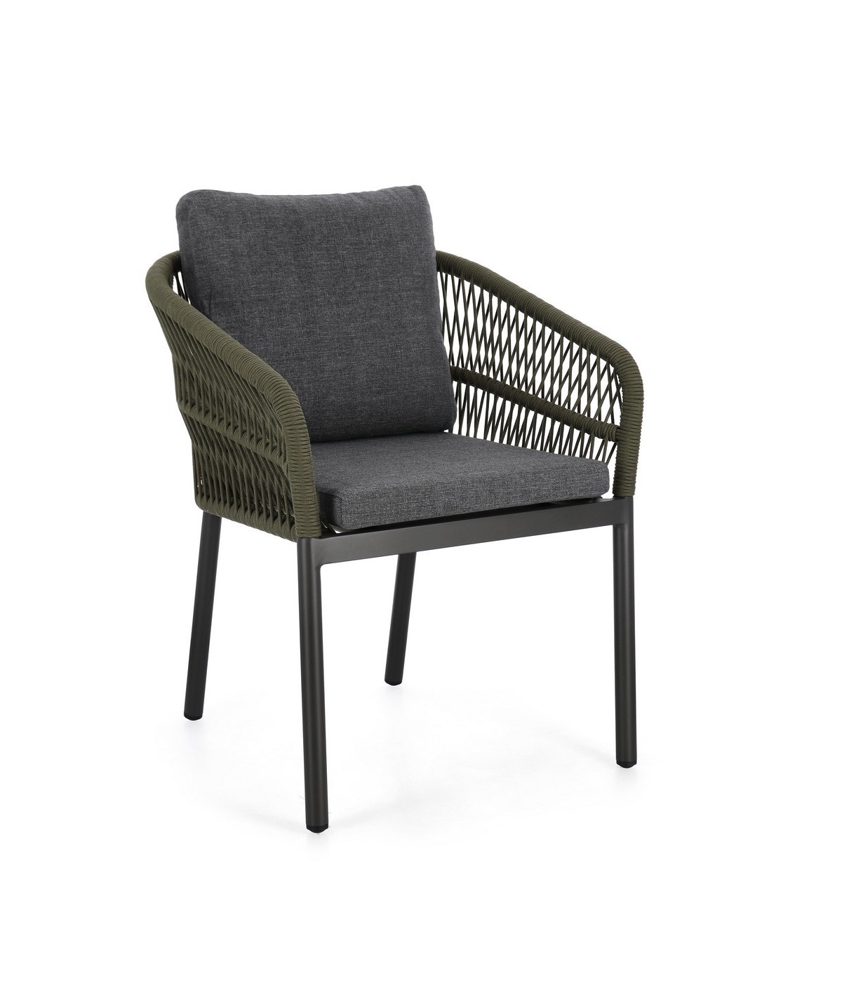 STRUTTURA IN ALLUMINIO VERNICIATA A POLVERE (POLIESTERE). INTRECCIO PER ESTERNO IN CORDA OLEFIN (POLIPROPILENE). CUSCINI SFODERABILI IN TESSUTO IDROREPELLENTE 100% POLIPROPILENE. IMPILABILE. IMBALLO SENZA CARTONE.