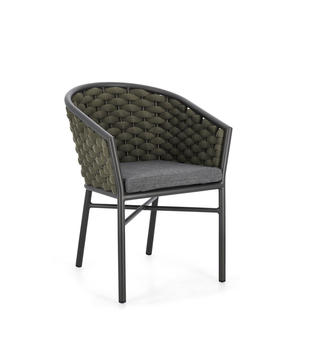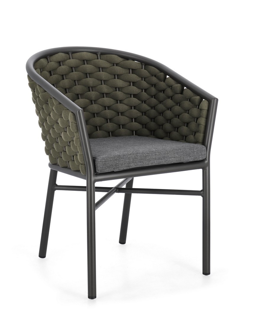 STRUTTURA IN ALLUMINIO VERNICIATA A POLVERE (POLIESTERE). INTRECCIO PER ESTERNO IN CORDA OLEFIN (POLIPROPILENE) IMBOTTITA IN GOMMA (POLIETILENE). CUSCINI SFODERABILI IN TESSUTO IDROREPELLENTE 100% POLIPROPILENE. IMPILABILE. IMBALLO SENZA CARTONE.