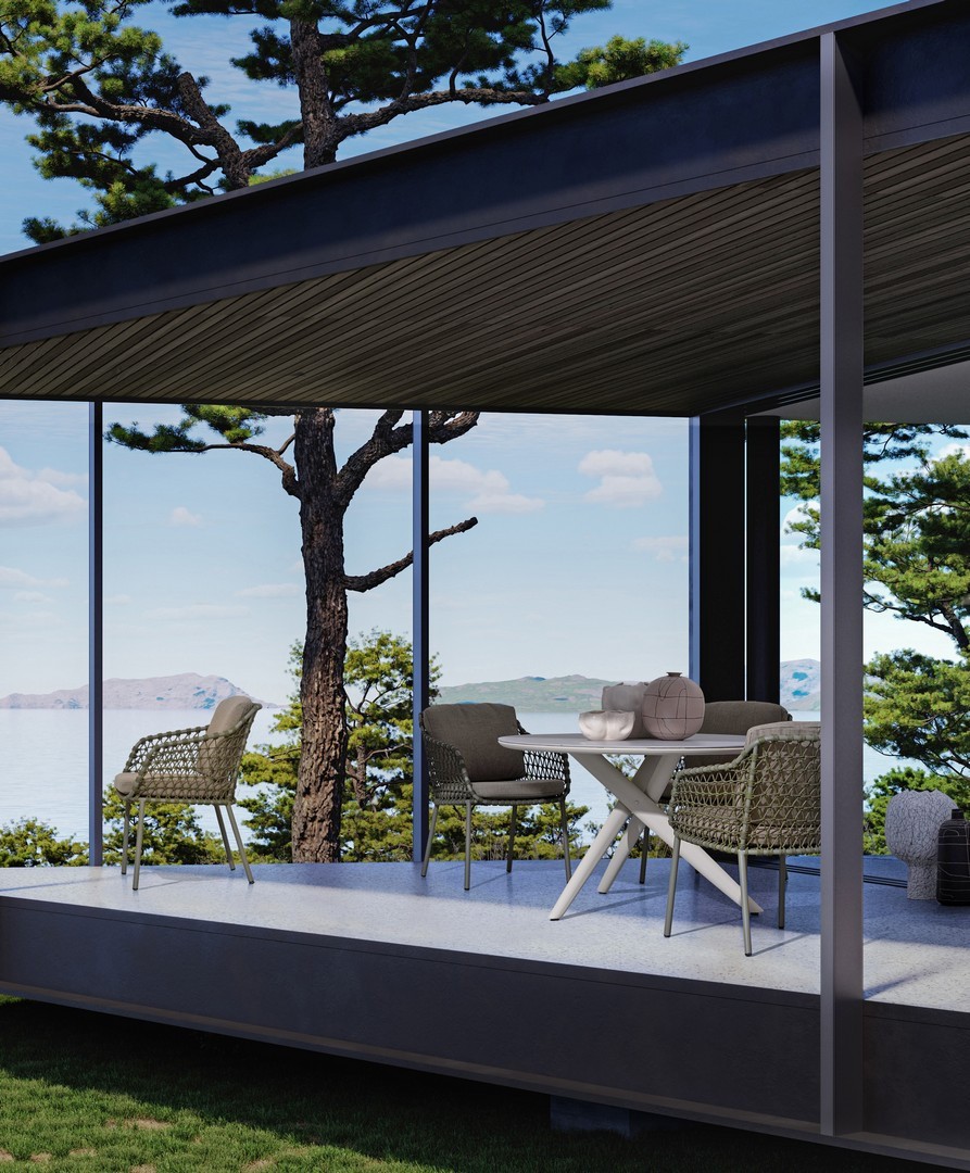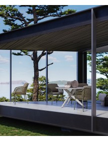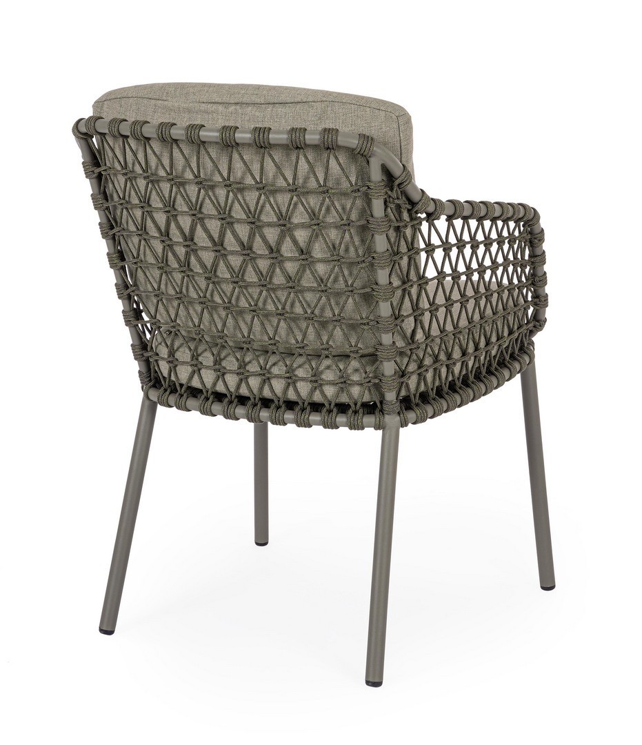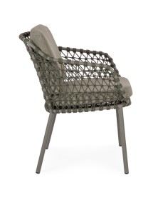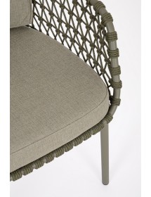 STRUTTURA IN ACCIAIO INOSSIDABILE (201). INTRECCIO PER ESTERNO IN CORDA (POLIPROPILENE). CUSCINI SFODERABILI IN TESSUTO IDROREPELLENTE SUNPROOF OLEFIN (100%POLYPROPYLENE). PER EVITARE FENOMENI DI CORROSIONE, SI SCONSIGLIA DI POSIZIONARE MOBILI CON STRUTTURA IN ACCIAIO INOSSIDABILE 201 IN LUOGHI AD ALTA SALINITÀ ( AMBIENTI MARINI ).