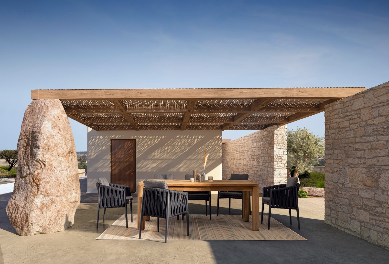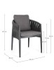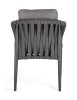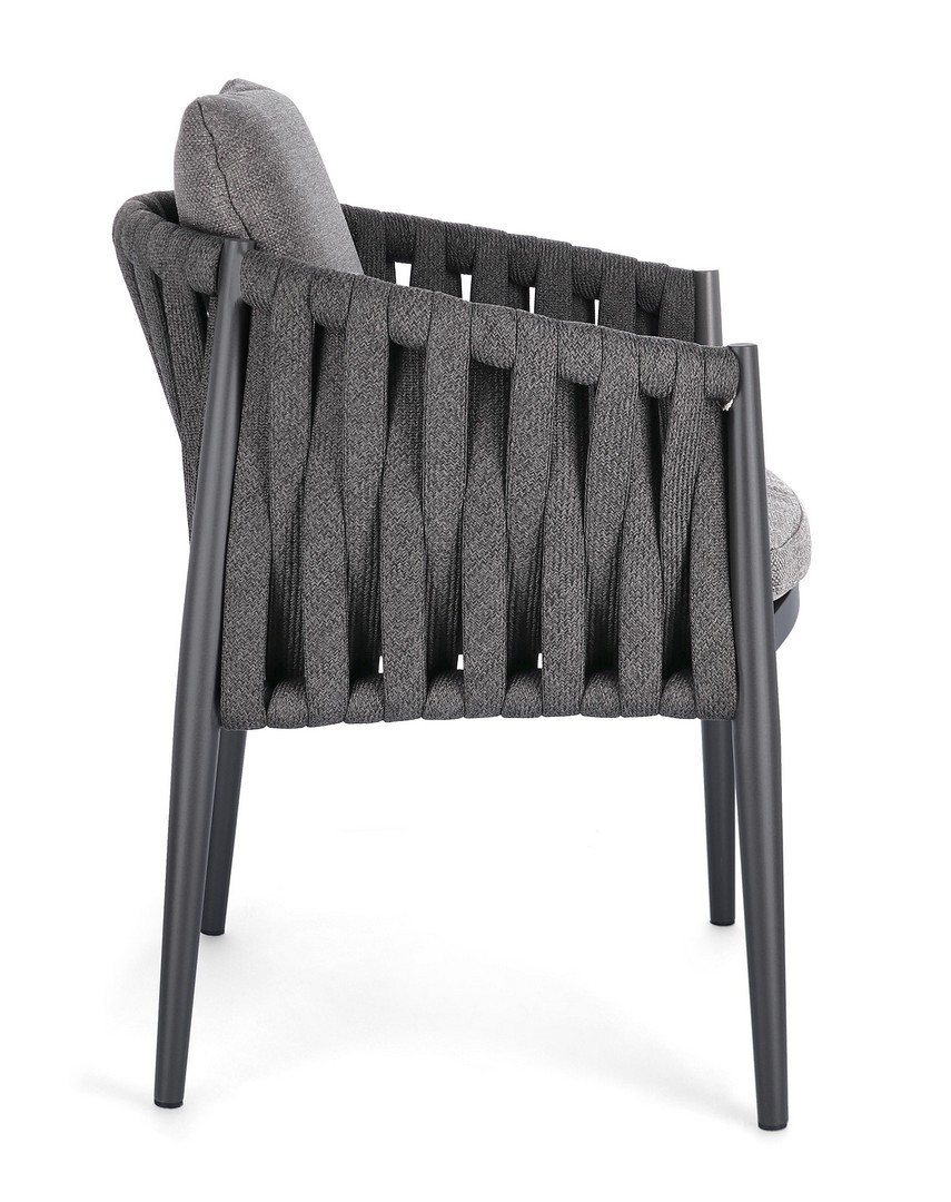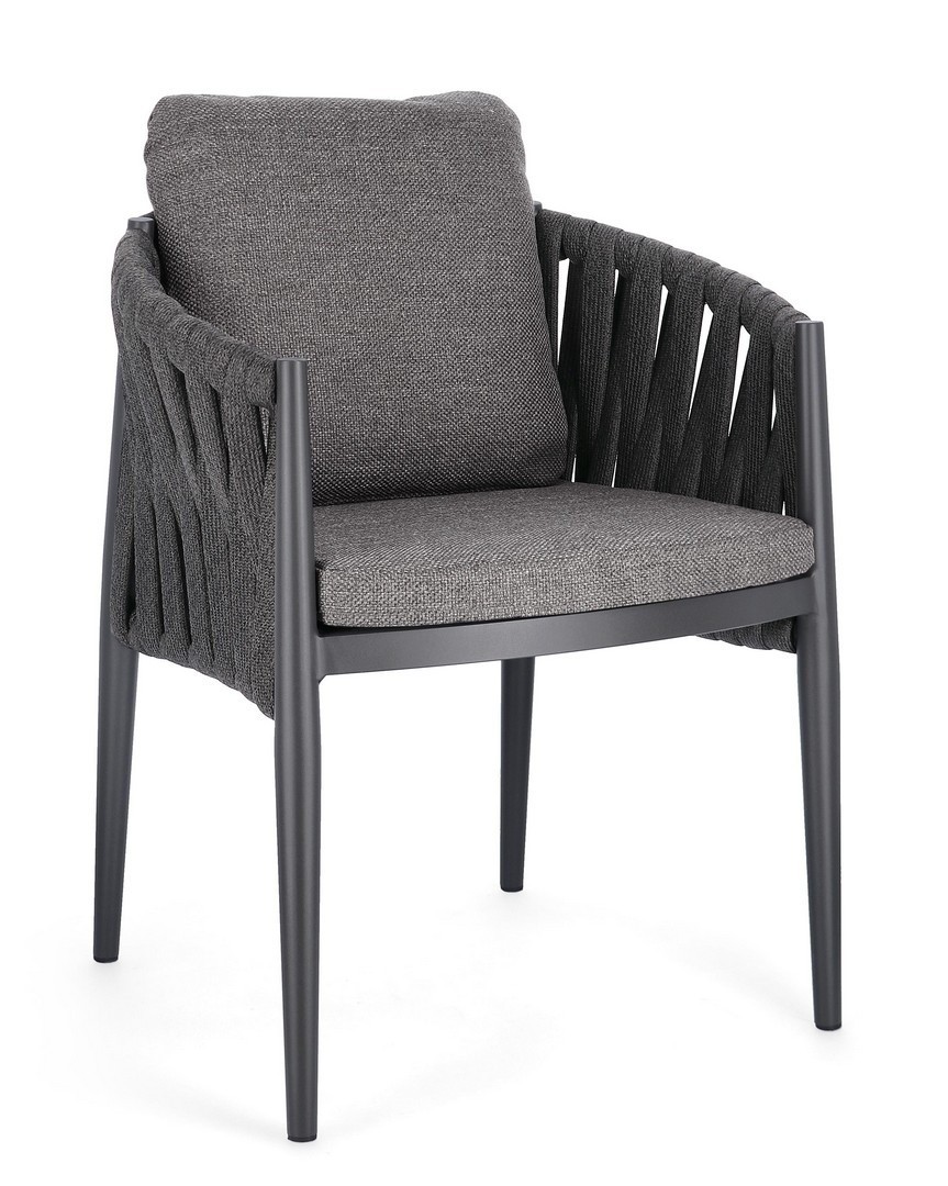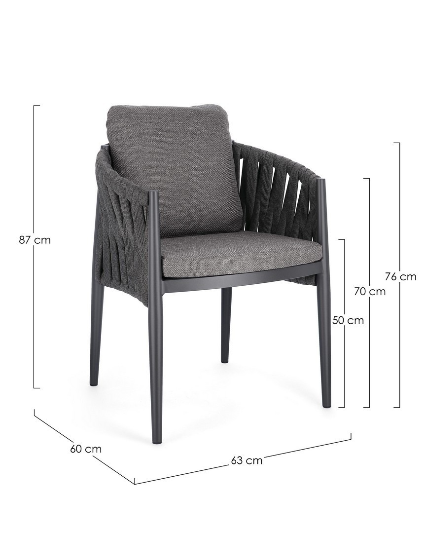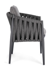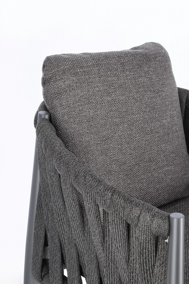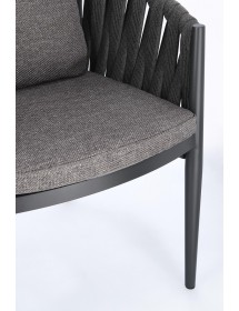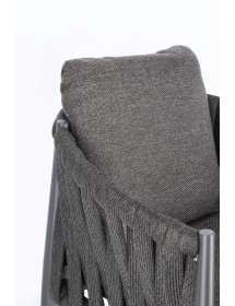 STRUTTURA IN ALLUMINIO VERNICIATO A POLVERE (POLIESTERE). INTRECCIO CON CORDE IN TETORON (100% POLIESTERE) CON IMBOTTITURA IN GOMMA (POLIETILENE). CUSCINO SEDUTA E SCHIENALE SFODERABILE IN TESSUTO IDROREPELLENTE OLEFIN (100% POLIPROPILENE)