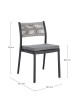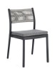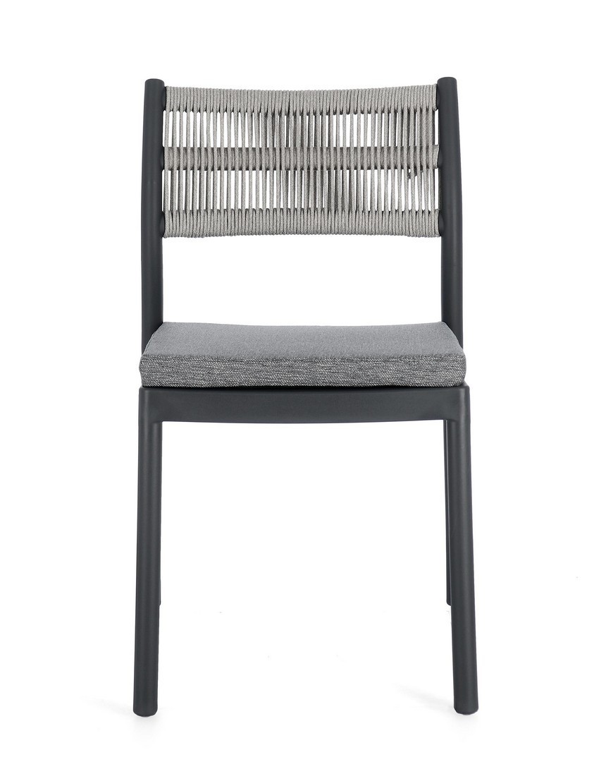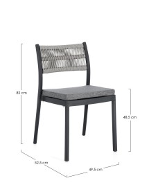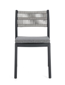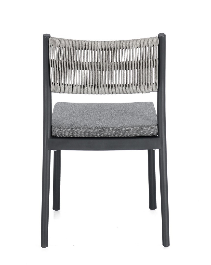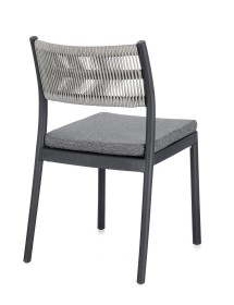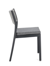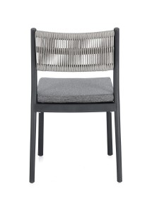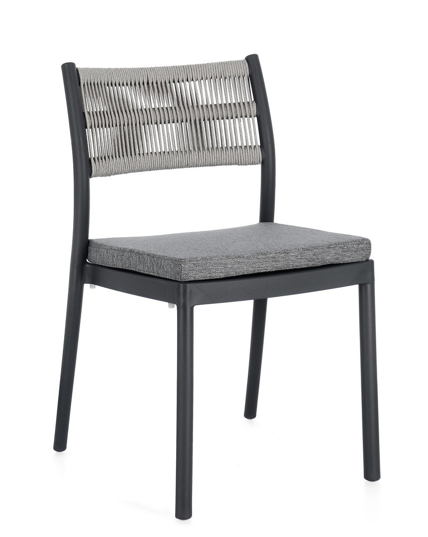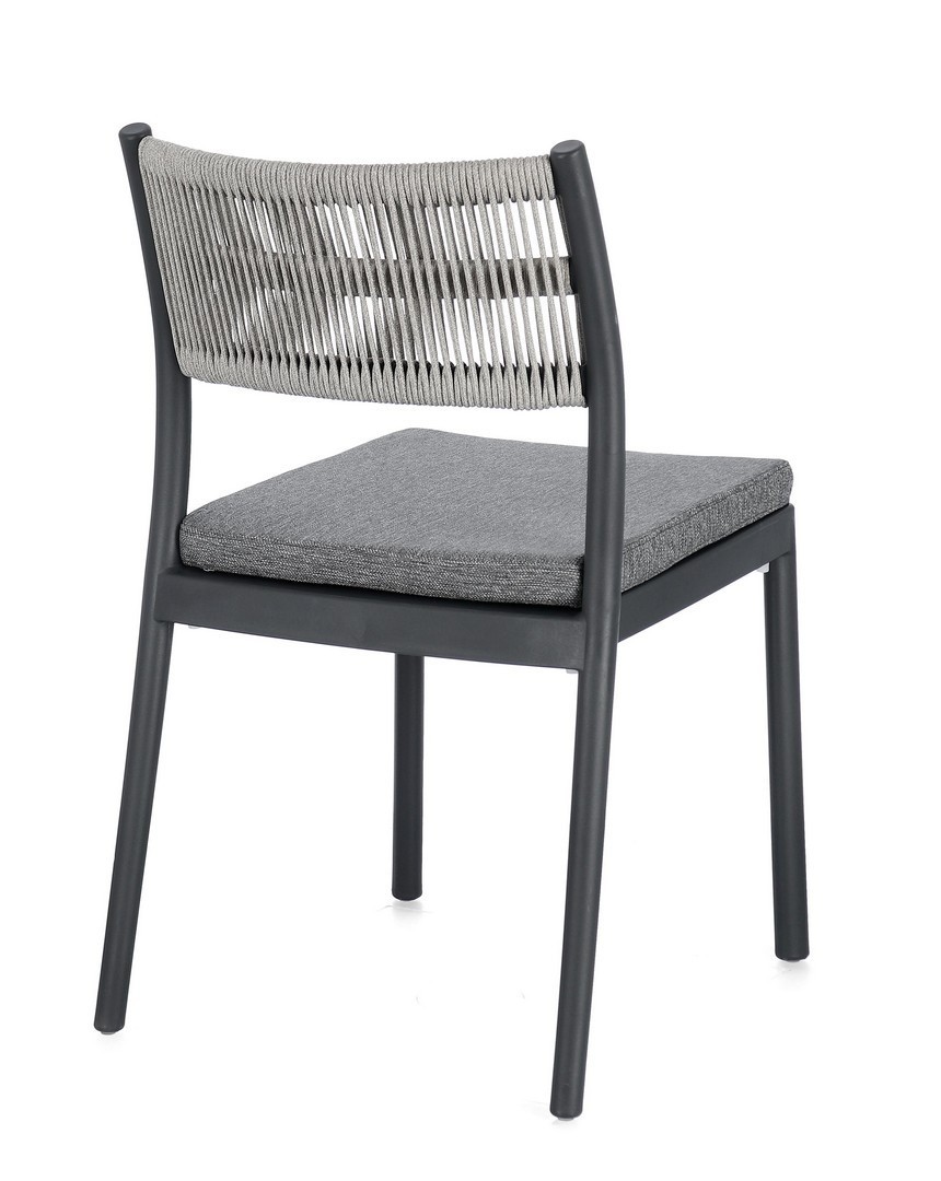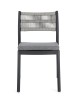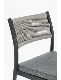 POLIPROPILENE (PP), RESISTENTE AI RAGGI UV. SCHIENALE CON INTRECCIO IN CORDA DI POLIESTERE. CUSCINO SEDUTA SFODERABILE CON TESSUTO IDROREPELLENTE POLIESTERE. IMPILABILE.