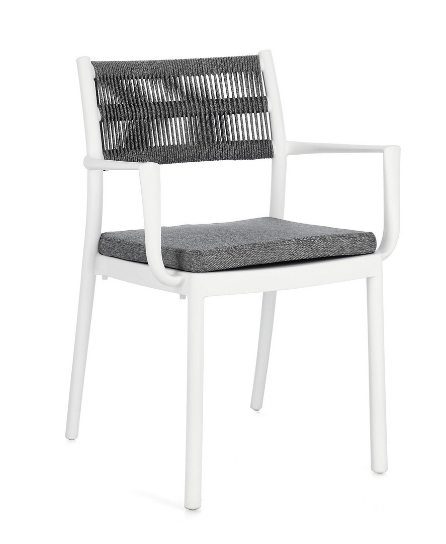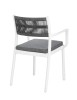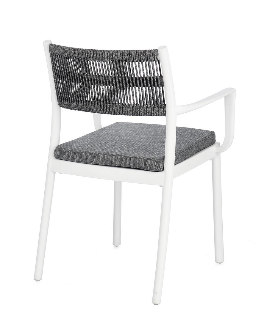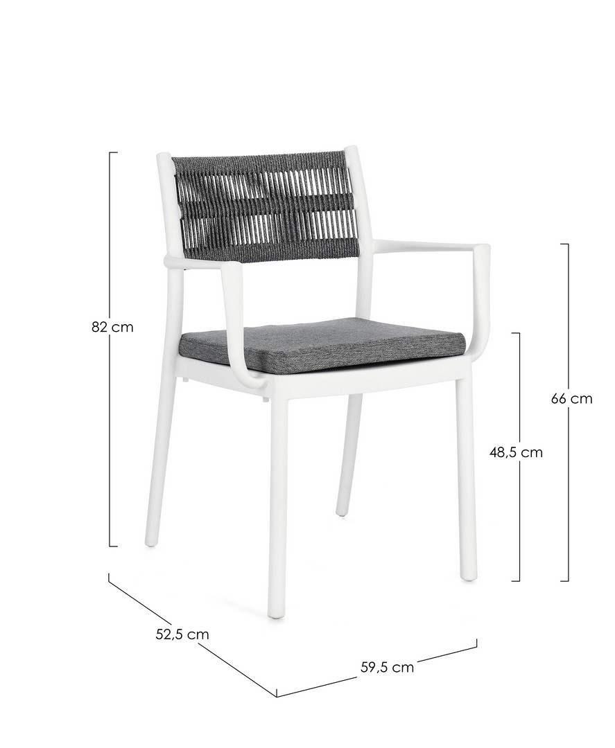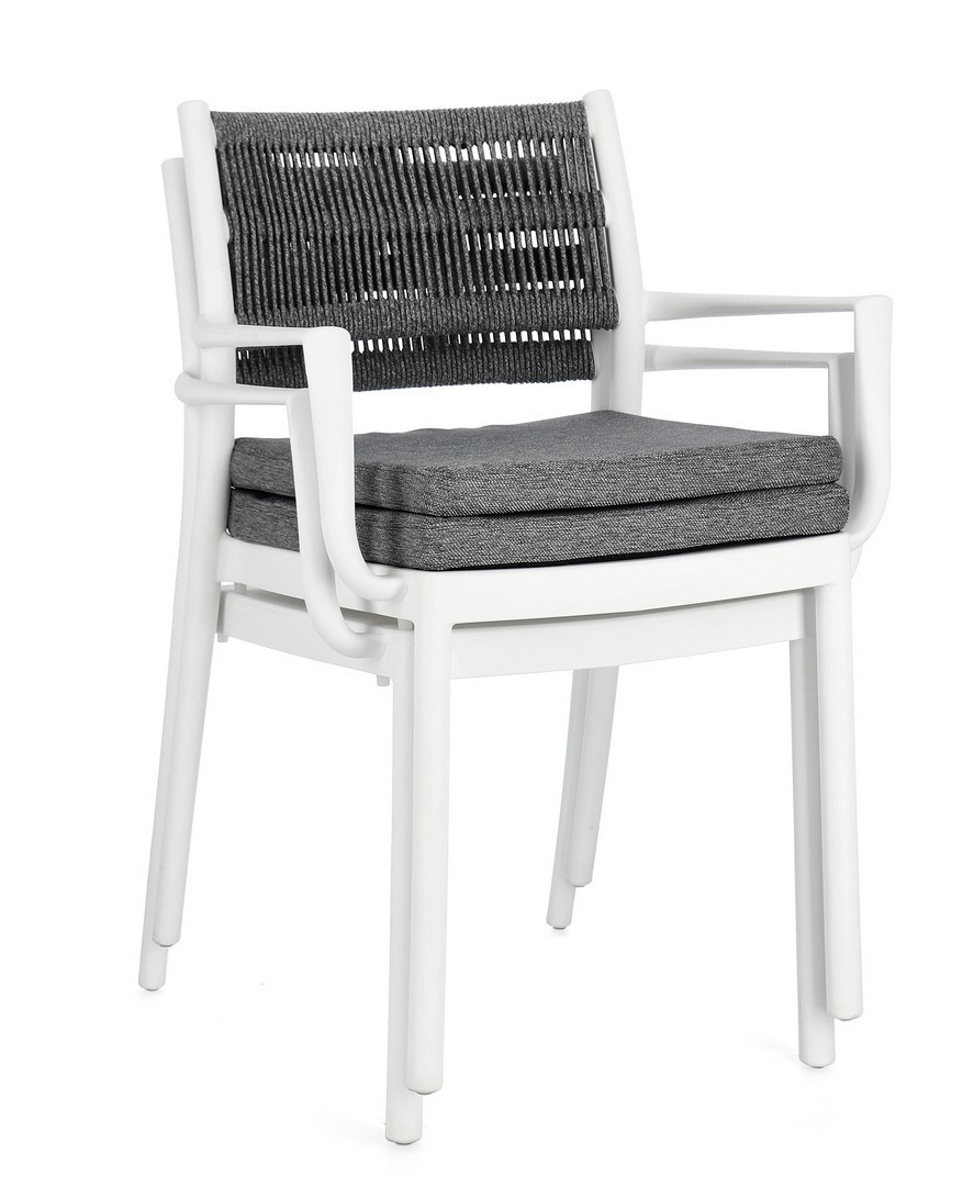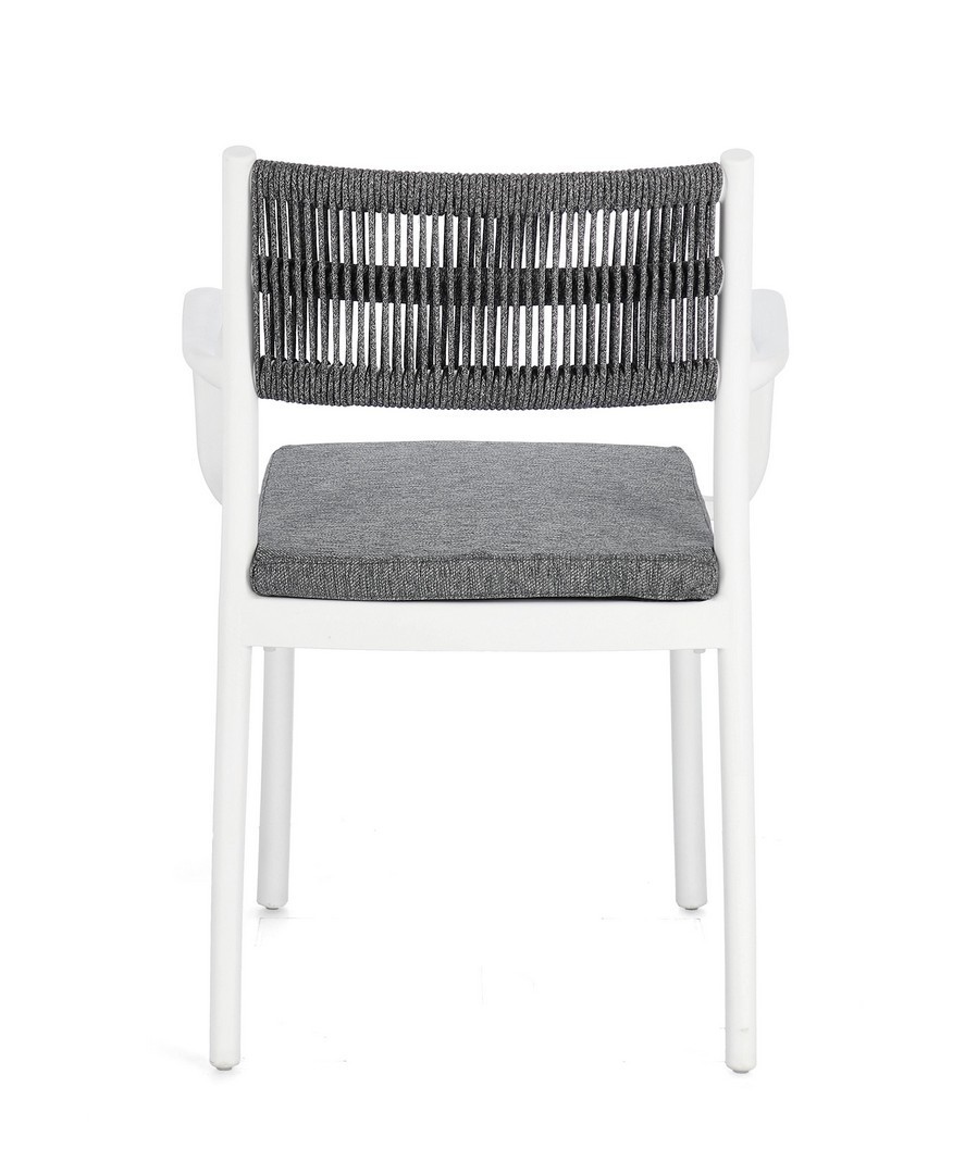 POLIPROPILENE (PP), RESISTENTE AI RAGGI UV. SCHIENALE CON INTRECCIO IN CORDA DI POLIESTERE. CUSCINO SEDUTA SFODERABILE CON TESSUTO IDROREPELLENTE POLIESTERE. IMPILABILE.