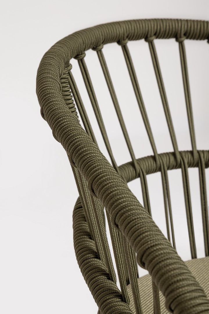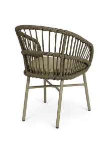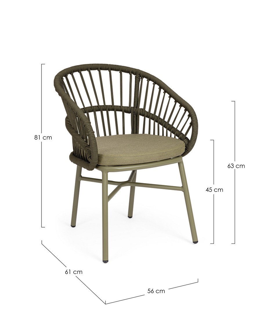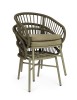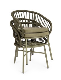 STRUTTURA IN ALLUMINIO VERNICIATA A POLVERE (POLIESTERE). INTRECCIO PER ESTERNO IN CORDA (POLIESTERE). CUSCINI SFODERABILI CON TESSUTO IDROREPELLENTE OLEFIN (100% POLIPROPILENE). IMPILABILE. IMBALLO SENZA CARTONE.