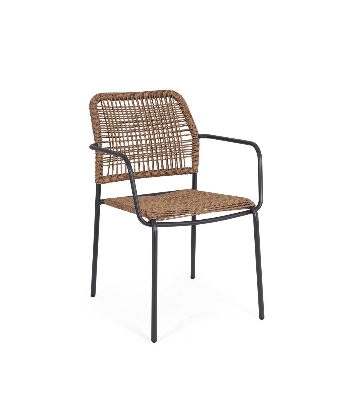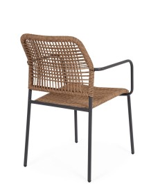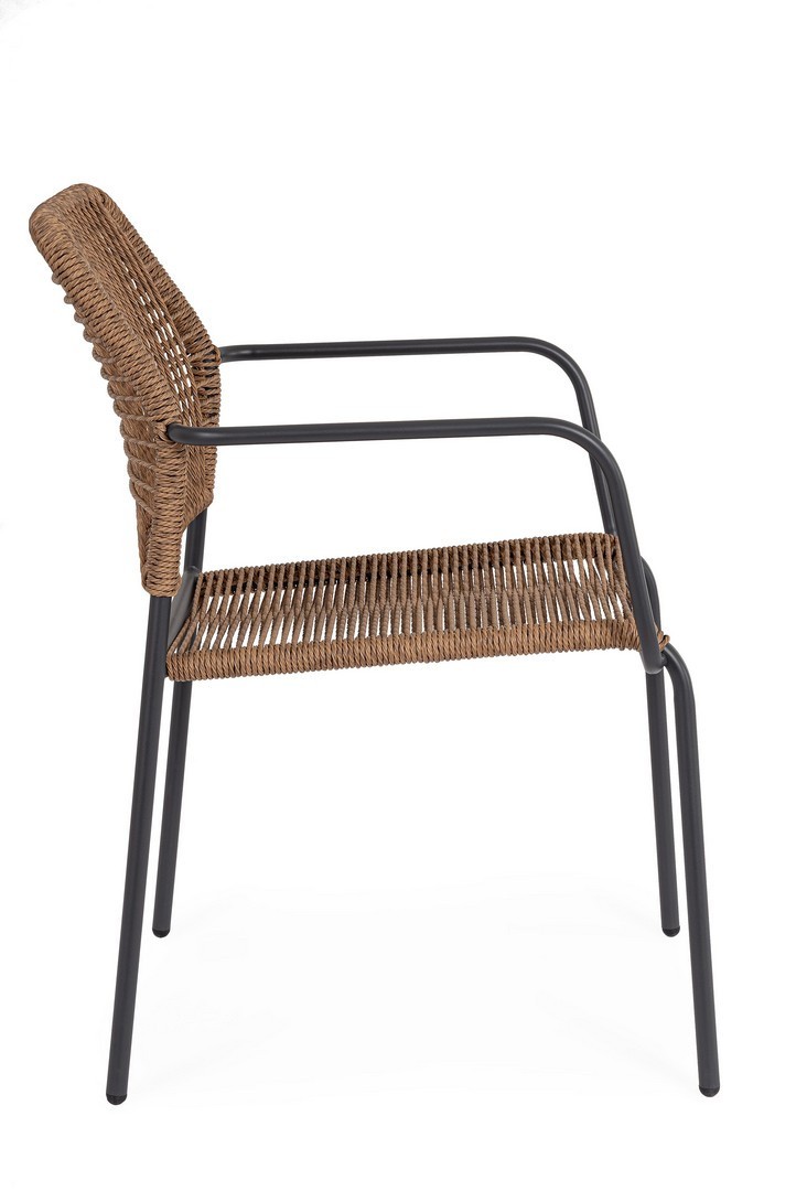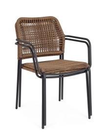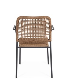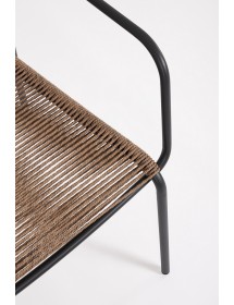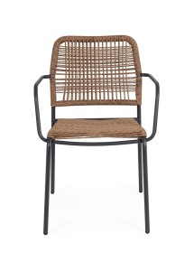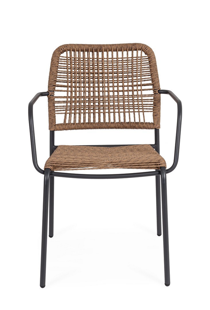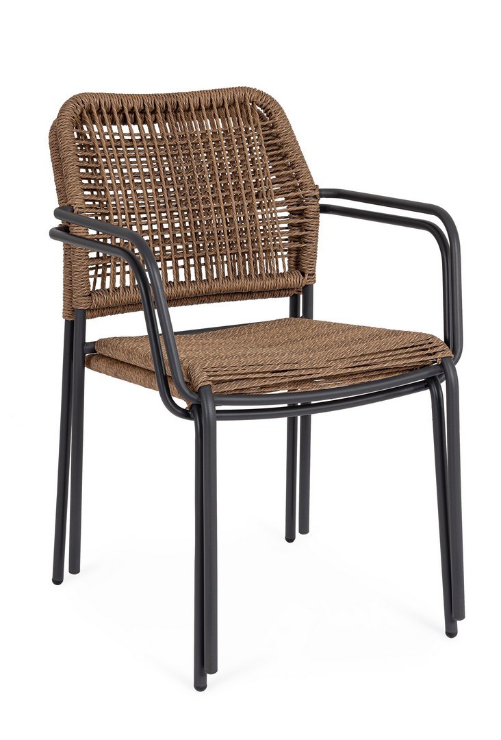 STRUTTURA IN ACCIAIO TRATTATO PER ESTERNO (E-COATING) E VERNICIATO A POLVERE (POLIESTERE). INTRECCIO IN FIBRA SINTETICA (TWISTED). IMPILABILE. IMBALLO SENZA CARTONE.
