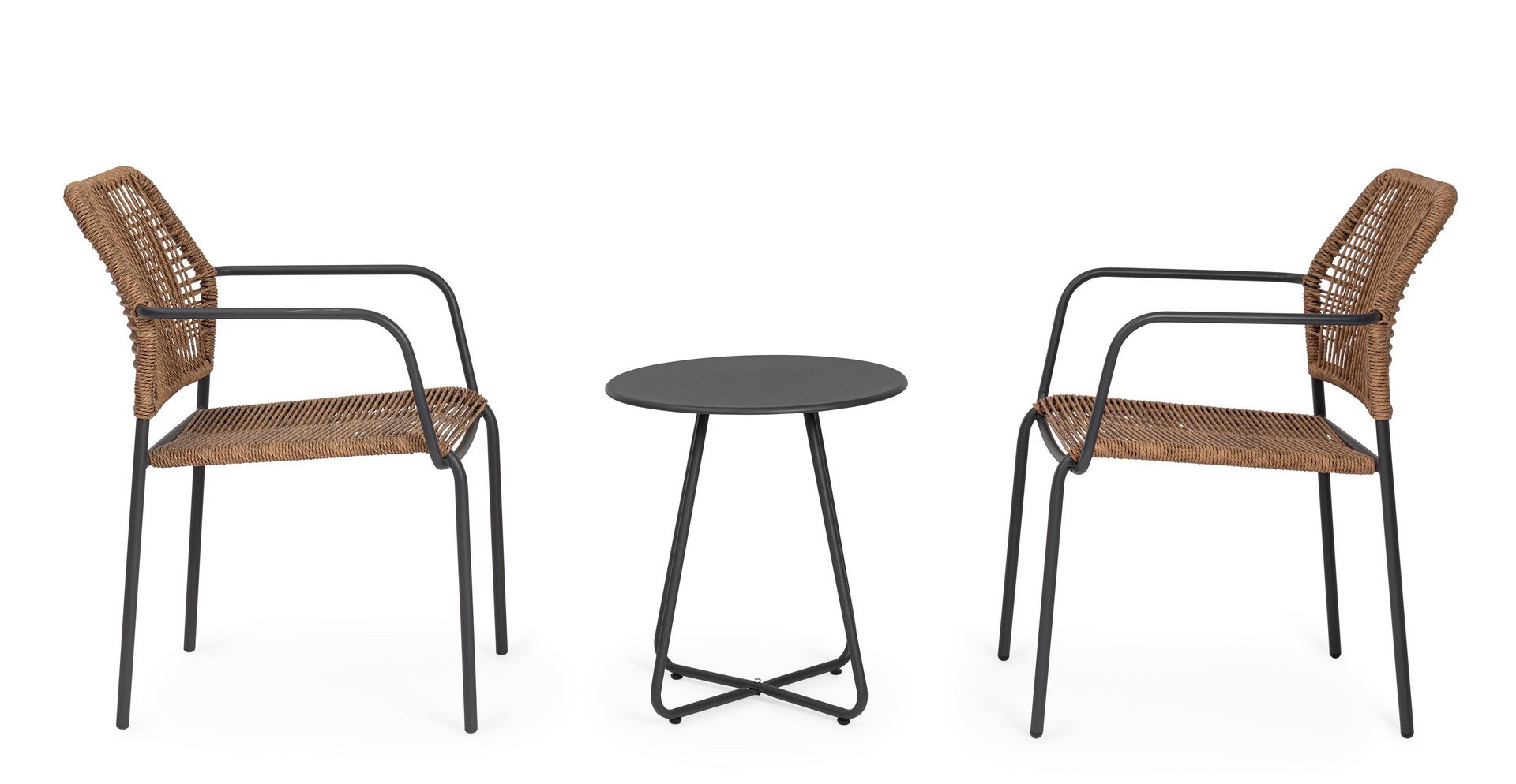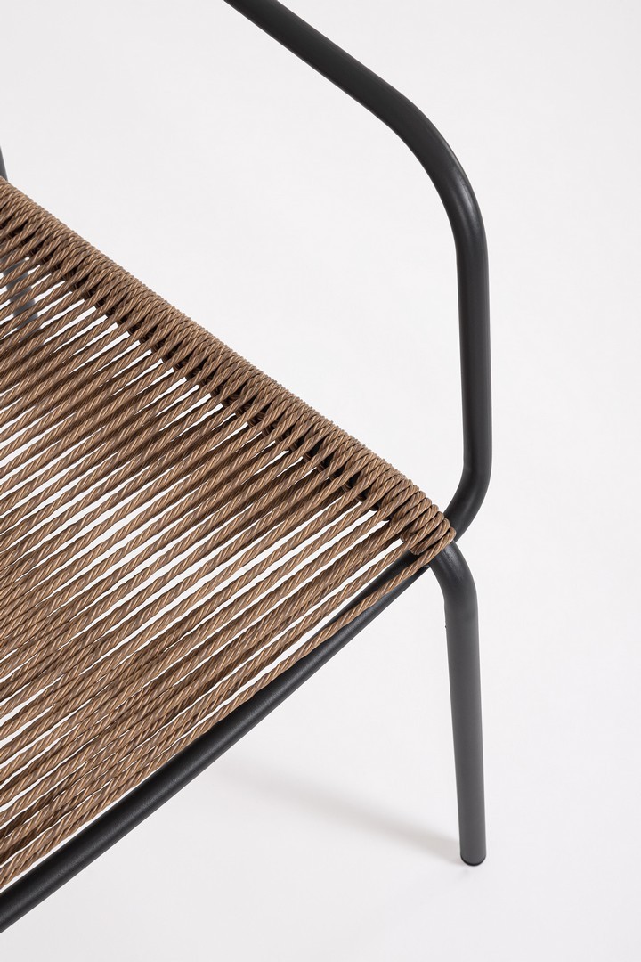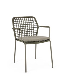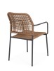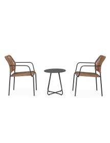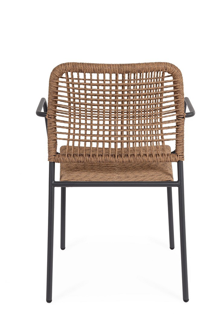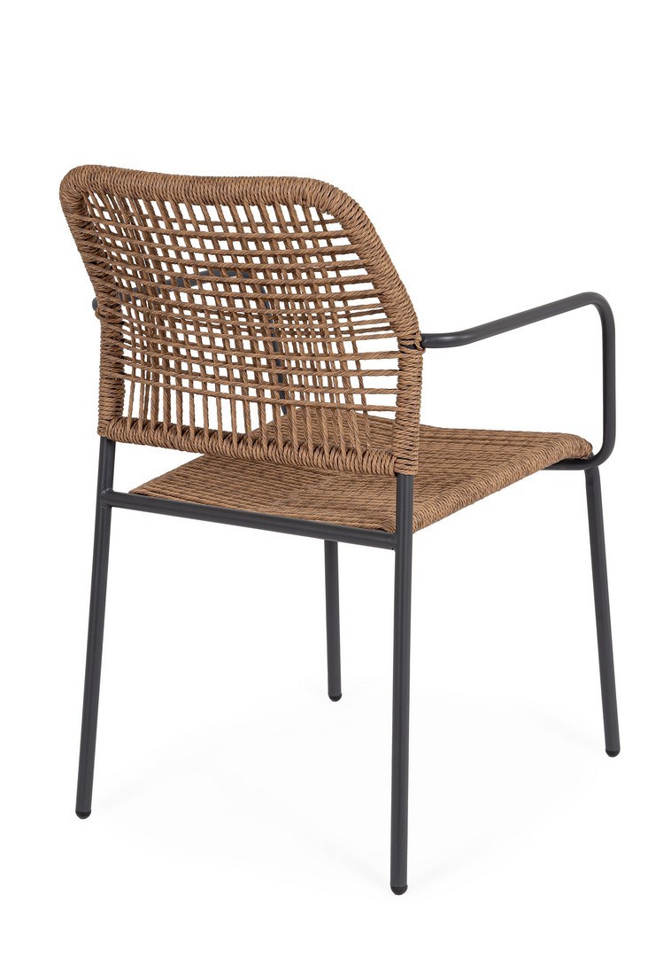 STRUTTURA IN ACCIAIO TRATTATO PER ESTERNO (E-COATING) E VERNICIATO A POLVERE (POLIESTERE). INTRECCIO IN FIBRA SINTETICA (TWISTED). IMPILABILE. IMBALLO SENZA CARTONE.