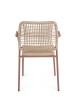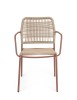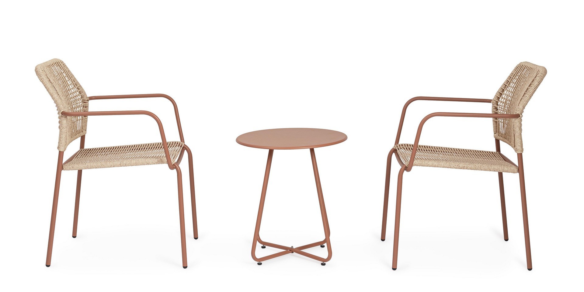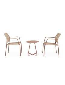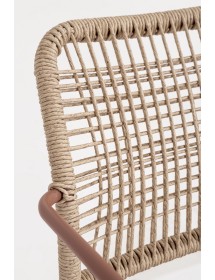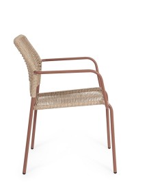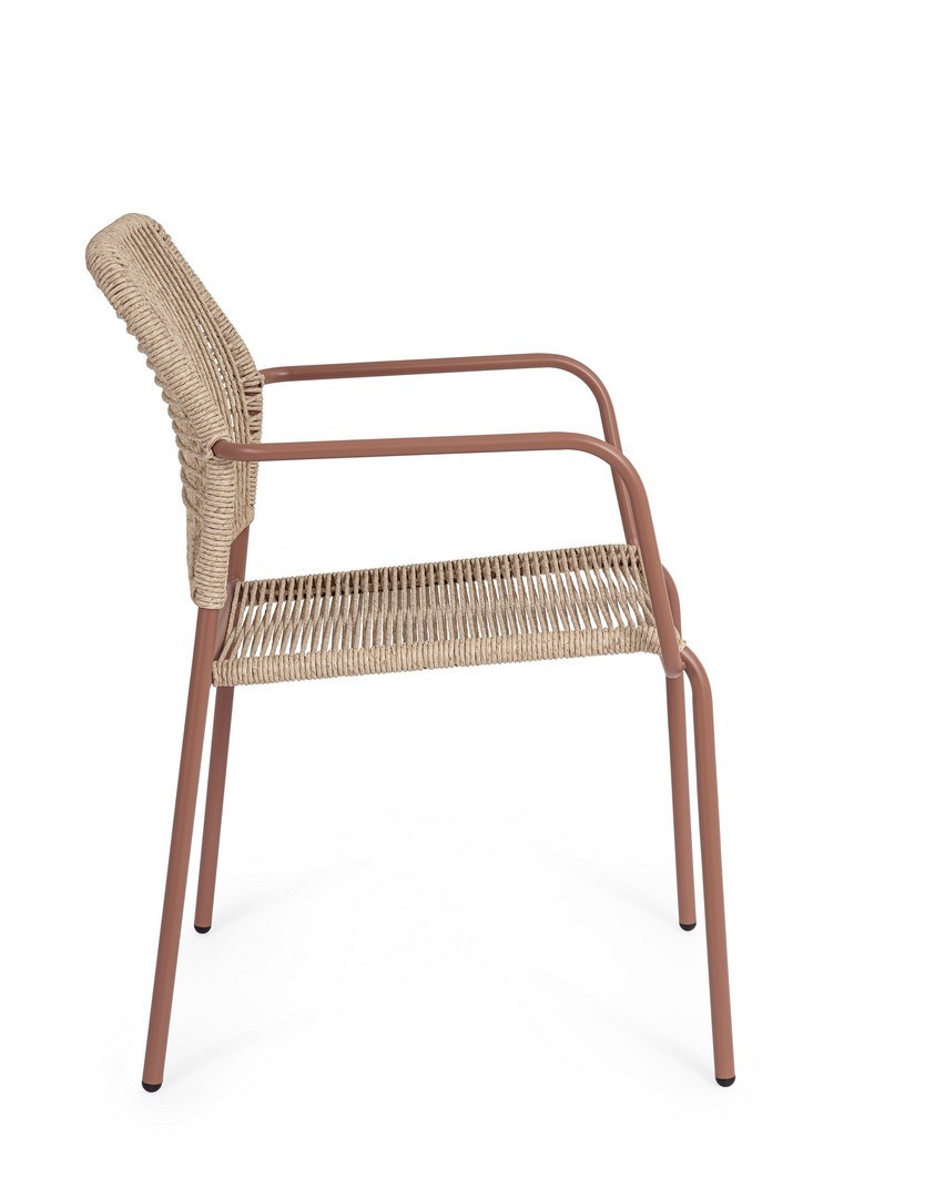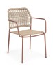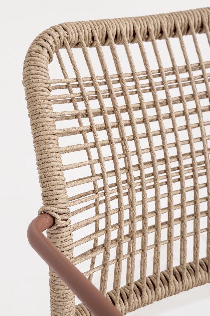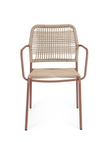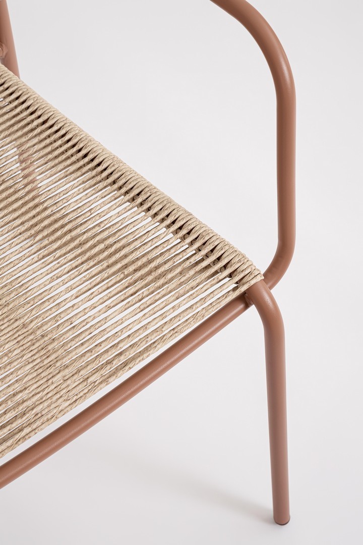 STRUTTURA IN ACCIAIO TRATTATO PER ESTERNO (E-COATING) E VERNICIATO A POLVERE (POLIESTERE). INTRECCIO IN FIBRA SINTETICA (TWISTED). IMPILABILE. IMBALLO SENZA CARTONE.