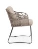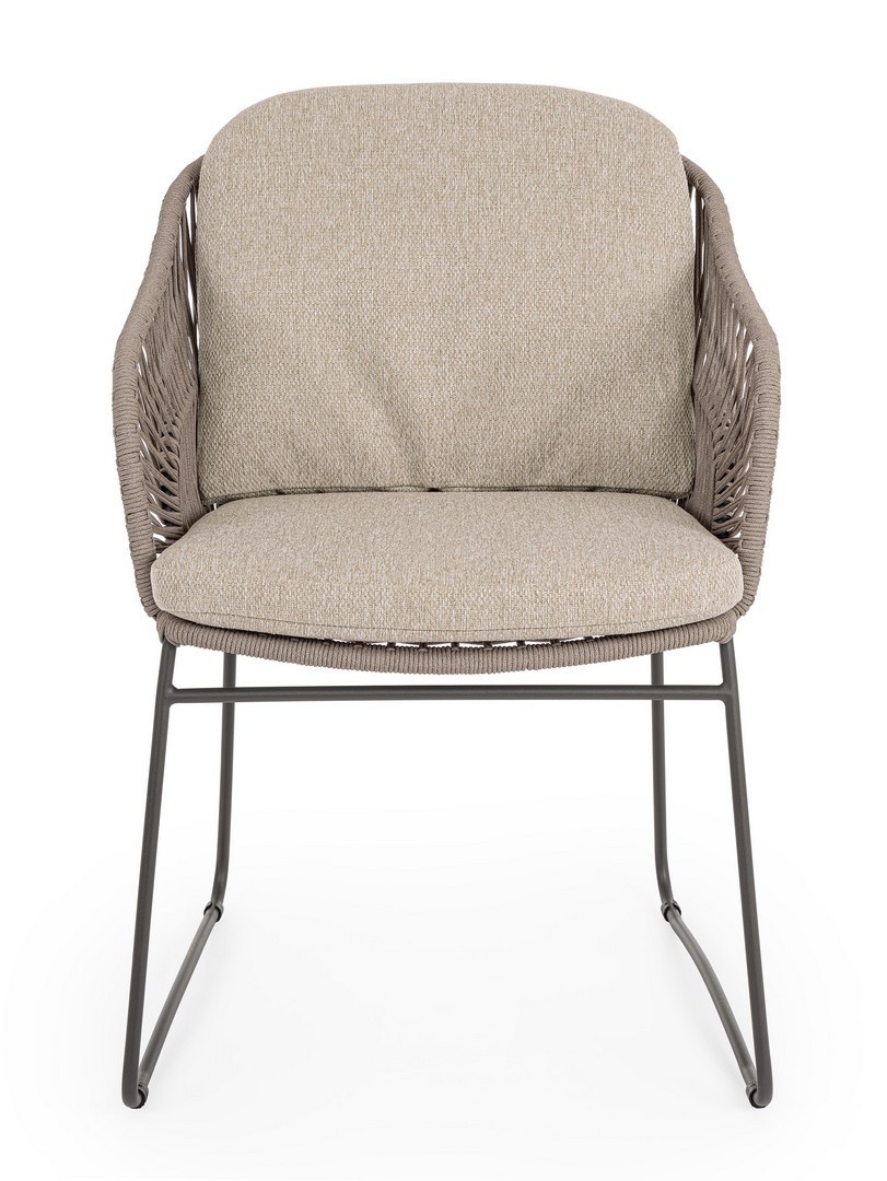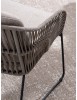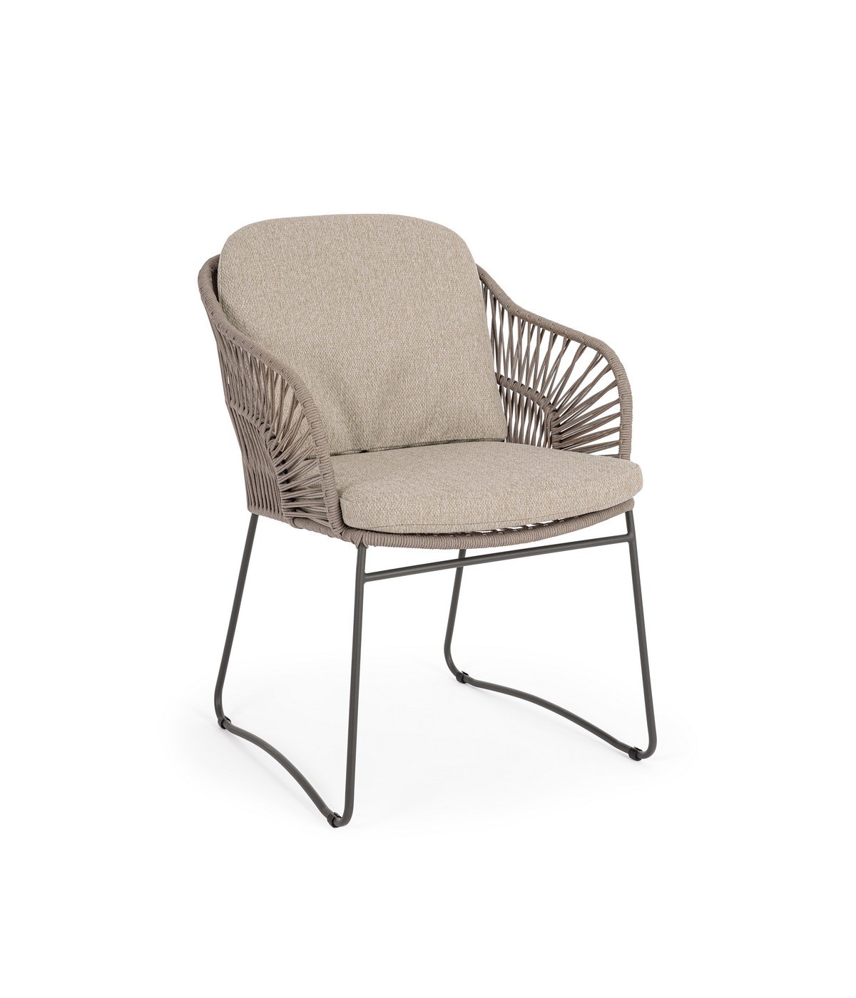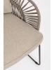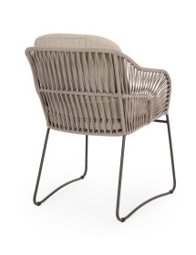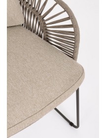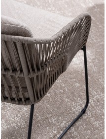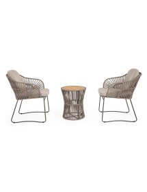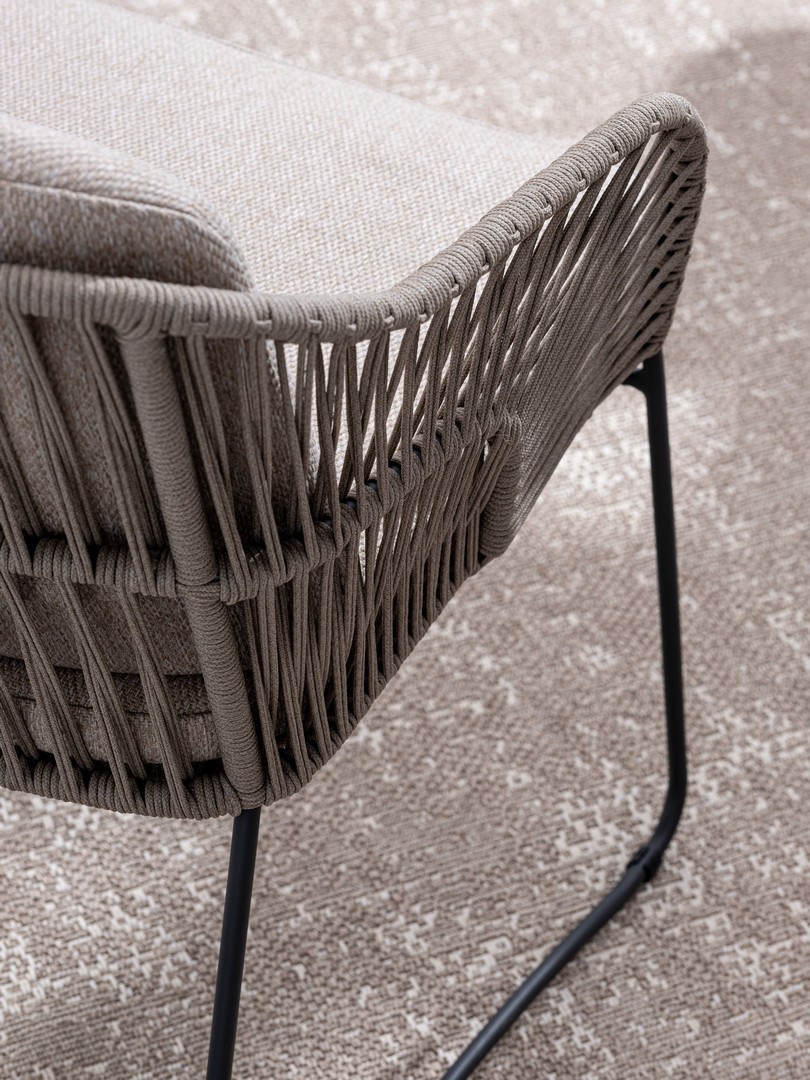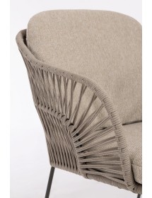 STRUTTURA IN ACCIAIO INOSSIDABILE (201). INTRECCIO PER ESTERNO IN CORDA (POLIPROPILENE). CUSCINI SFODERABILI IN TESSUTO IDROREPELLENTE SUNPROOF OLEFIN (100%POLIPROPILENE). PER EVITARE FENOMENI DI CORROSIONE, SI SCONSIGLIA DI POSIZIONARE MOBILI CON STRUTTURA IN ACCIAIO INOSSIDABILE 201 IN LUOGHI AD ALTA SALINITÀ ( AMBIENTI MARINI ).