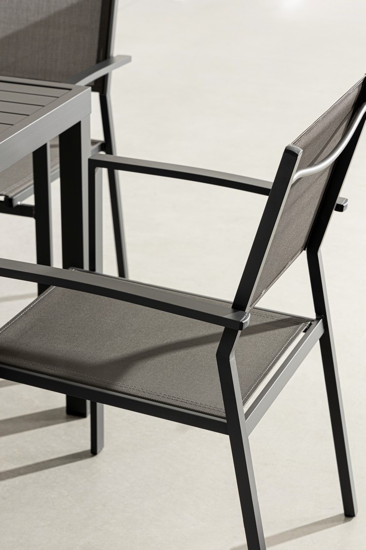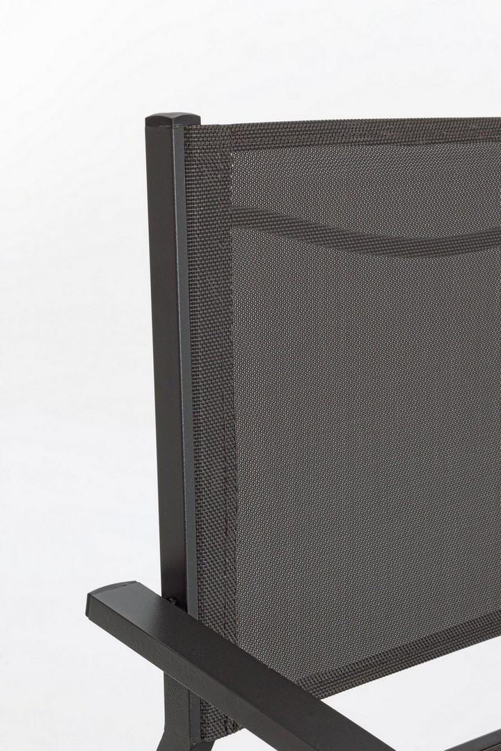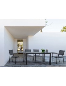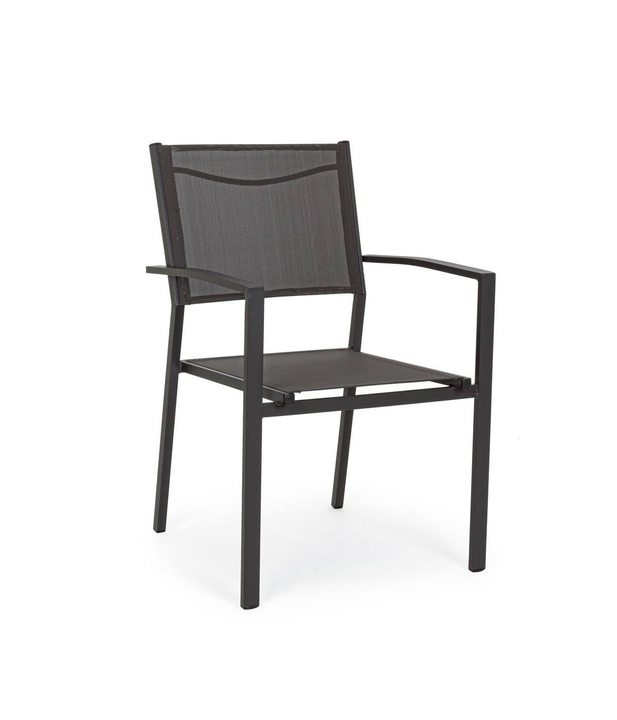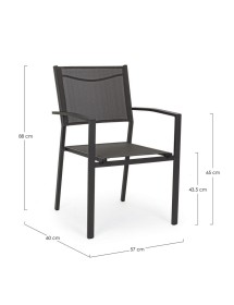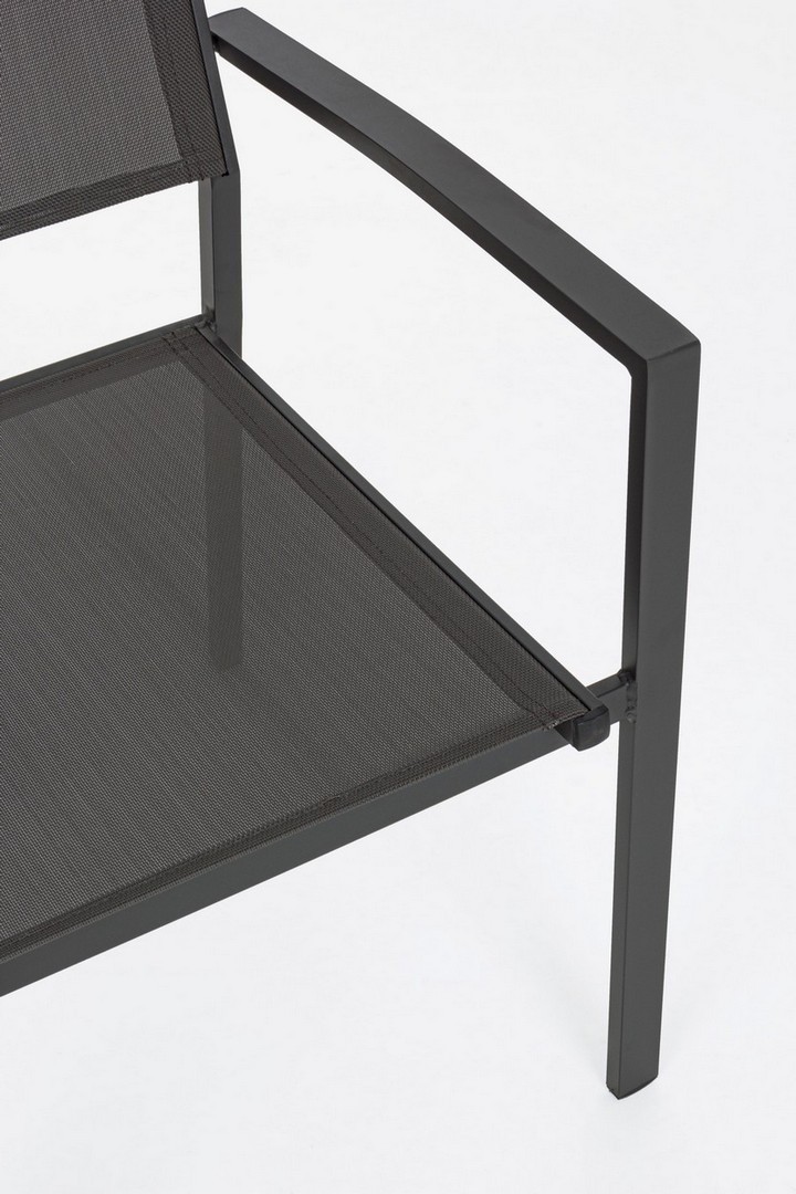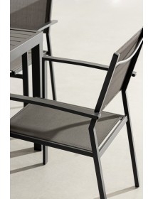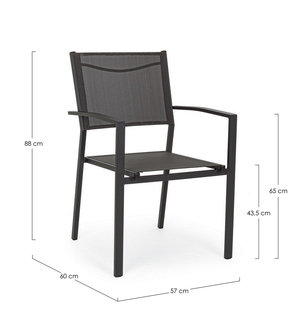 STRUTTURA IN ALLUMINIO, VERNICIATO A POLVERE (POLIESTERE). SEDUTA E SCHIENALE IN TEXTILENE 2X1. IMPILABILE.