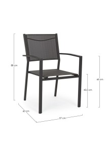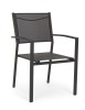 STRUTTURA IN ALLUMINIO, VERNICIATO A POLVERE (POLIESTERE). SEDUTA E SCHIENALE IN TEXTILENE 2X1. IMPILABILE. IMBALLO SENZA CARTONE.