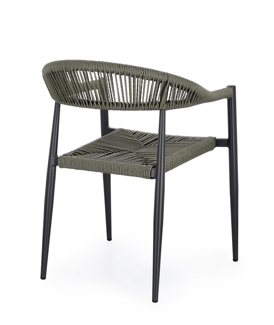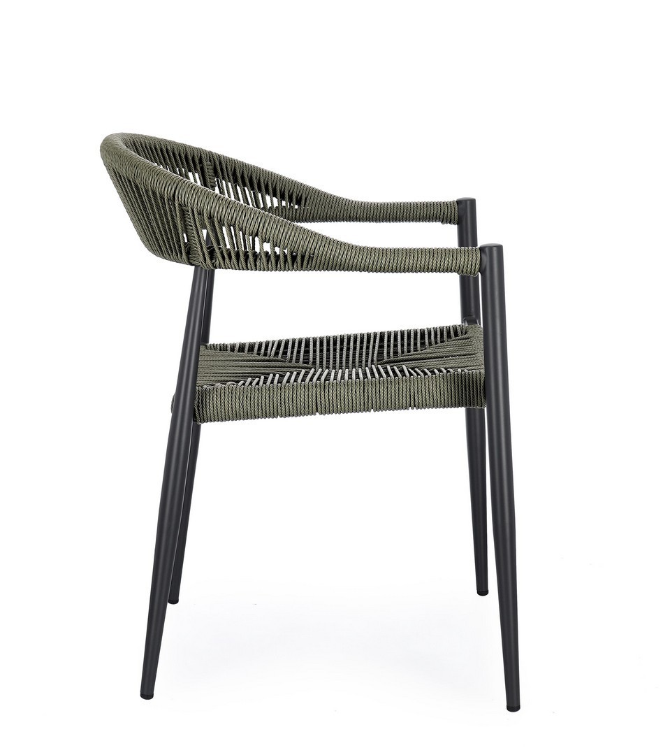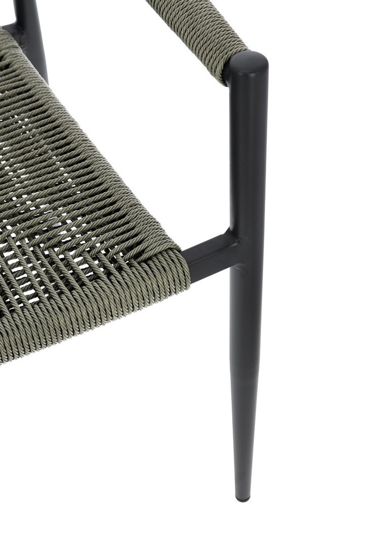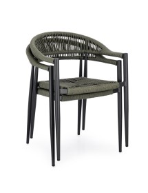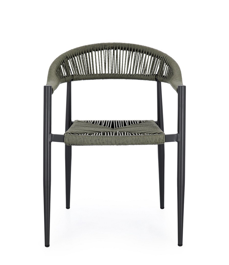 STRUTTURA IN ALLUMINIO, VERNICIATA A POLVERE (POLIESTERE), INTRECCIO IN FIBRA SINTETICA (TWISTED). IMPILABILE. IMBALLO SENZA CARTONE.