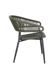STRUTTURA IN ALLUMINIO, VERNICIATA A POLVERE (POLIESTERE), INTRECCIO IN FIBRA SINTETICA (TWISTED). IMPILABILE. IMBALLO SENZA CARTONE.
