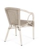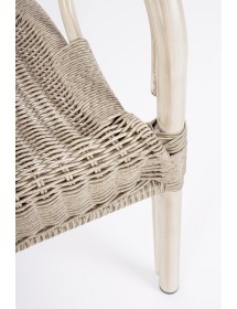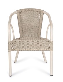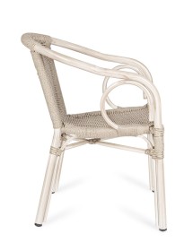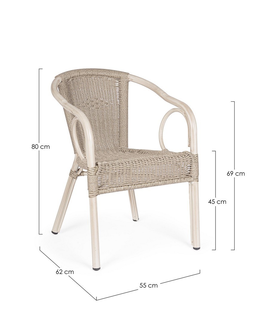 STRUTTURA IN ALLUMINIO, VERNICIATA A POLVERE (POLIESTERE), INTRECCIO IN FIBRA SINTETICA (TONDA 4MM). IMPILABILE. IMBALLO SENZA CARTONE.