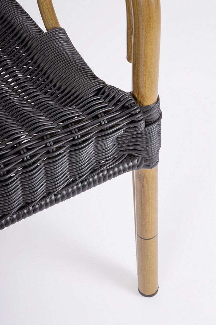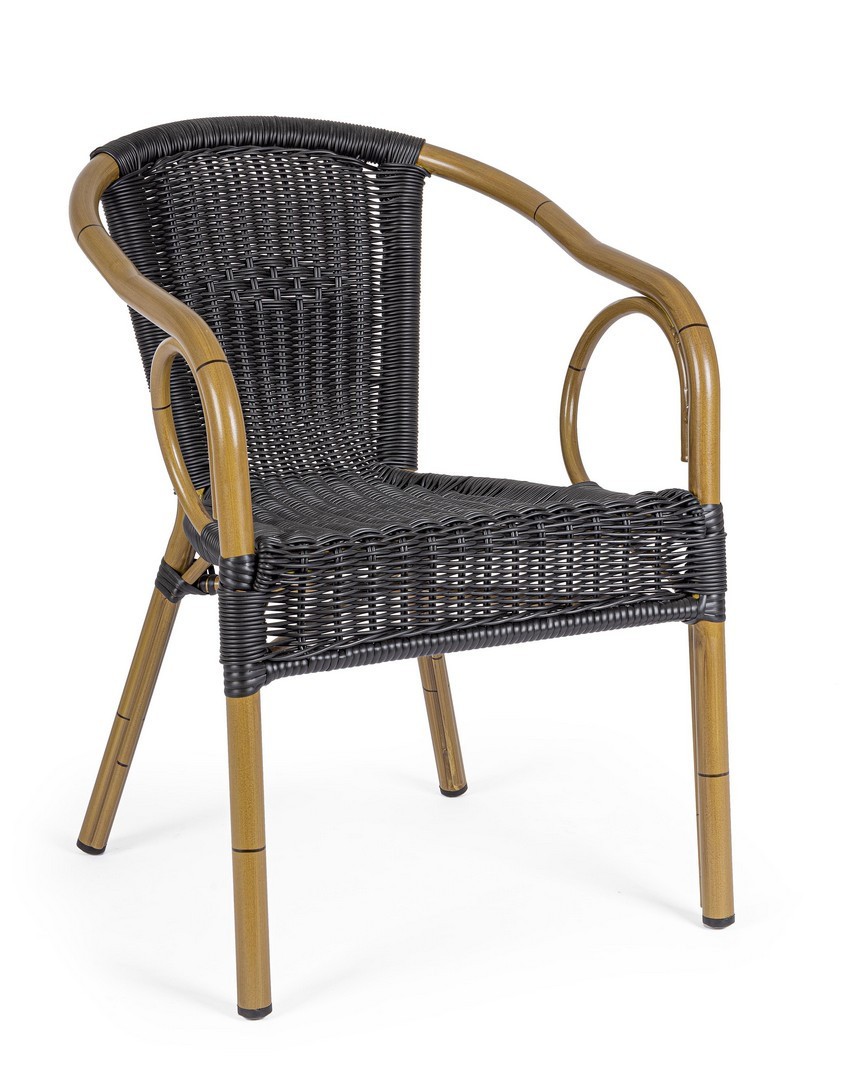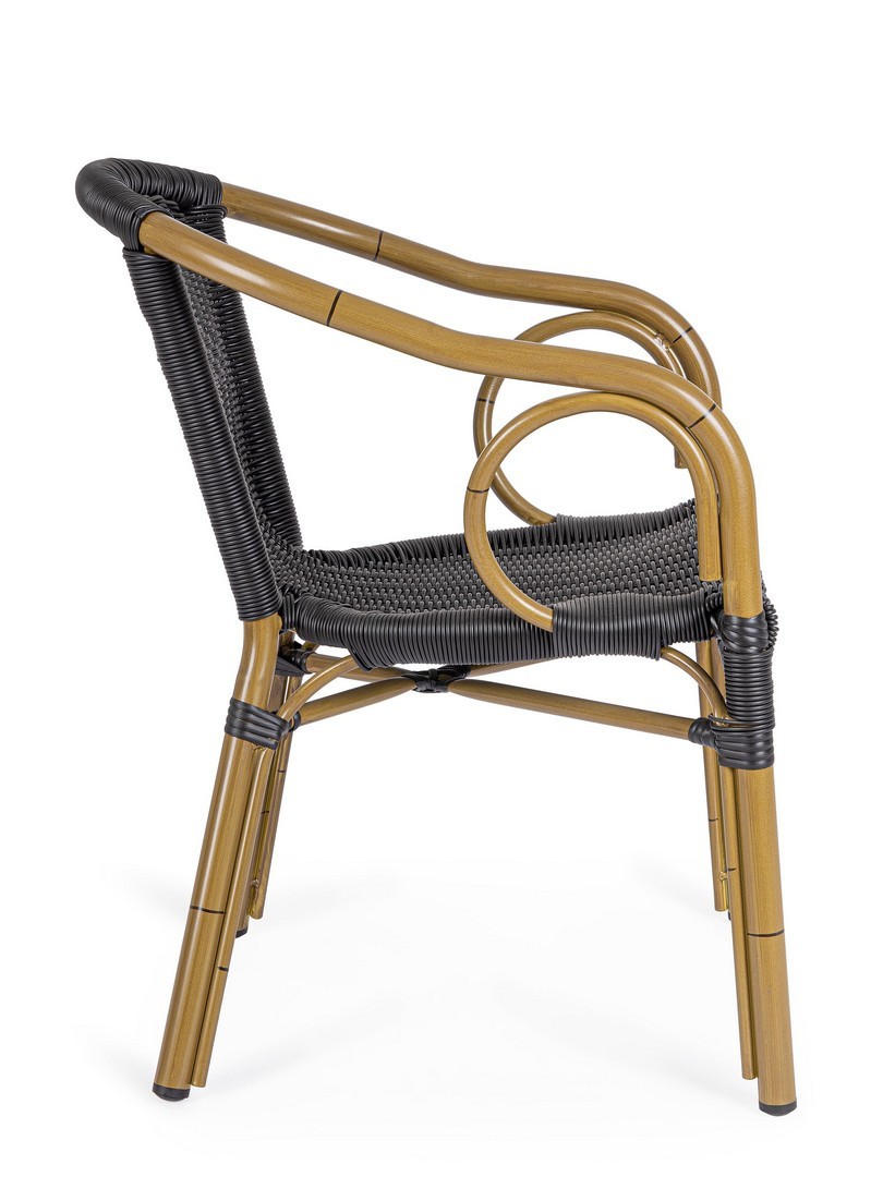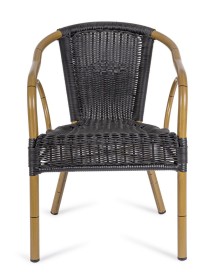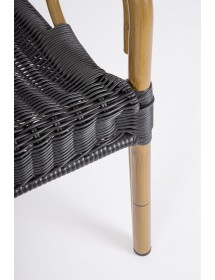 STRUTTURA IN ALLUMINIO, VERNICIATA A POLVERE (POLIESTERE), INTRECCIO IN FIBRA SINTETICA (TONDA 4MM). IMPILABILE. IMBALLO SENZA CARTONE.