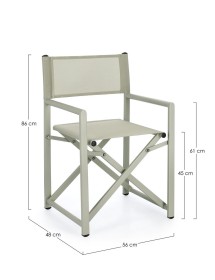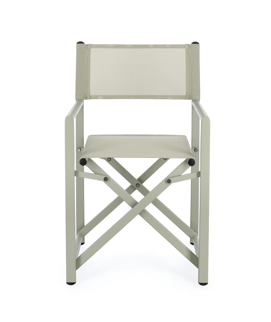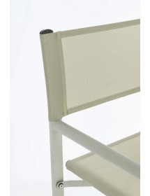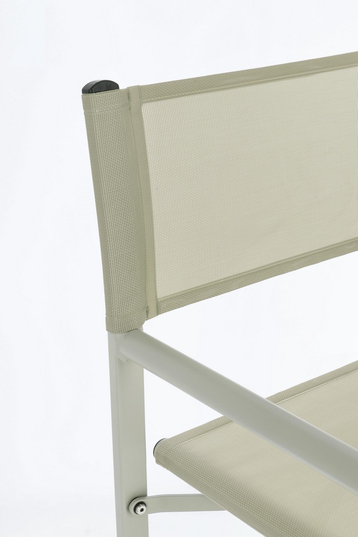 STRUTTURA IN ALLUMINIO, VERNICIATO A POLVERE (POLIESTERE). SEDUTA E SCHIENALE IN TEXTILENE 2X1 (610G/M2), CON CUCITURE TERMOSALDATE. FERRAMENTA IN ACCIAIO GALVANIZZATO. PIEGHEVOLE.