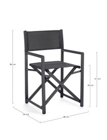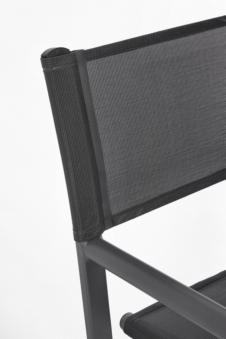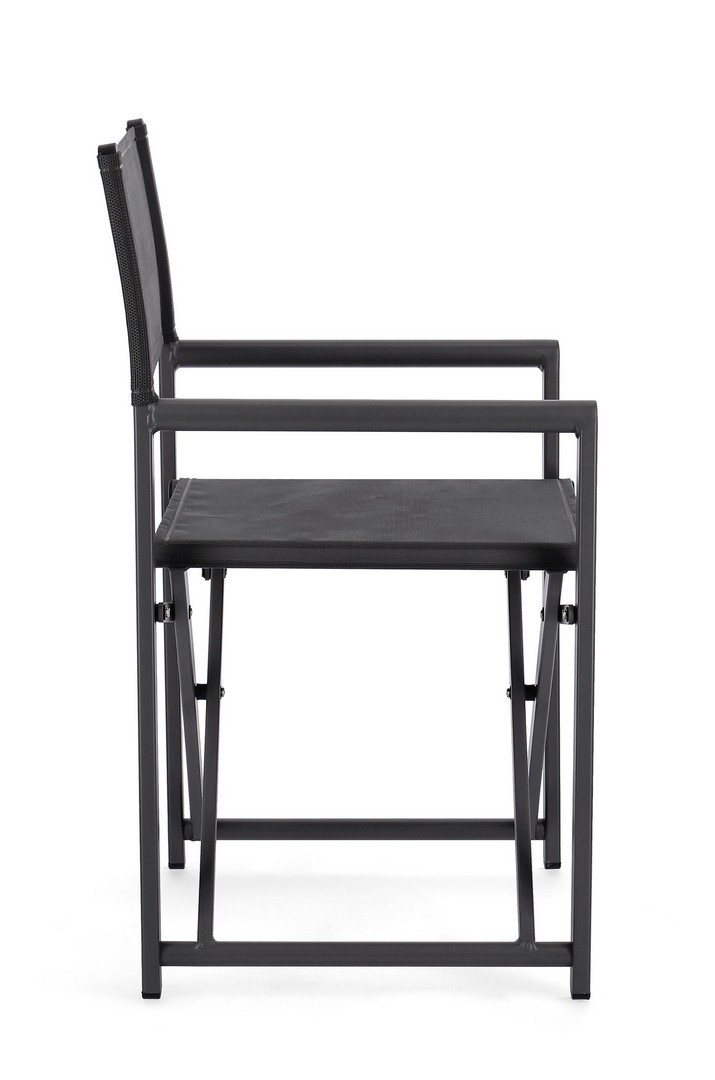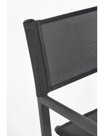 STRUTTURA IN ALLUMINIO, VERNICIATO A POLVERE (POLIESTERE). SEDUTA E SCHIENALE IN TEXTILENE 2X1 (610G/M2), CON CUCITURE TERMOSALDATE. FERRAMENTA IN ACCIAIO GALVANIZZATO. PIEGHEVOLE.