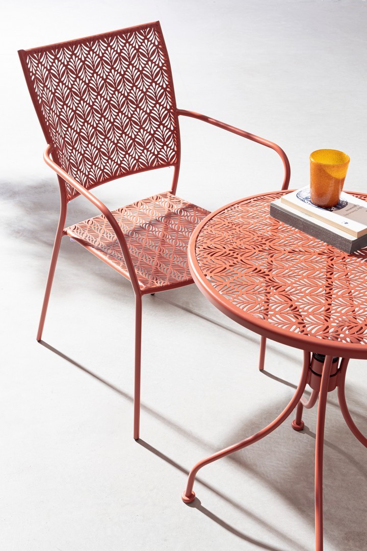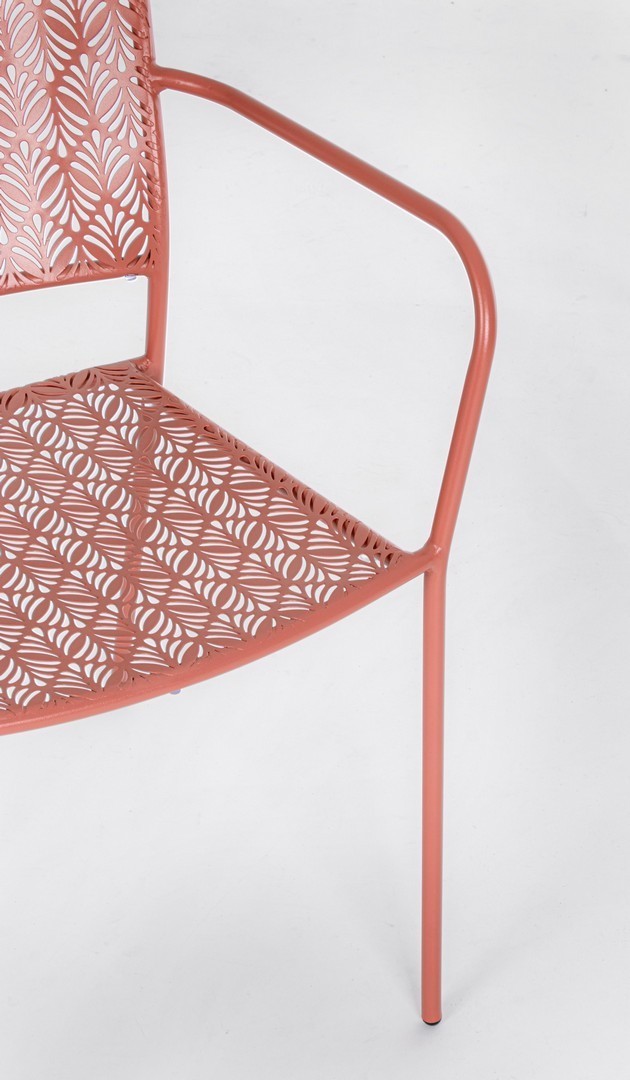 ACCIAIO TRATTATO PER ESTERNO (E-COATING) E VERNICIATO A POLVERE (POLIESTERE) CON FINITURA OPACA. IMPILABILE. IMBALLO SENZA CARTONE.