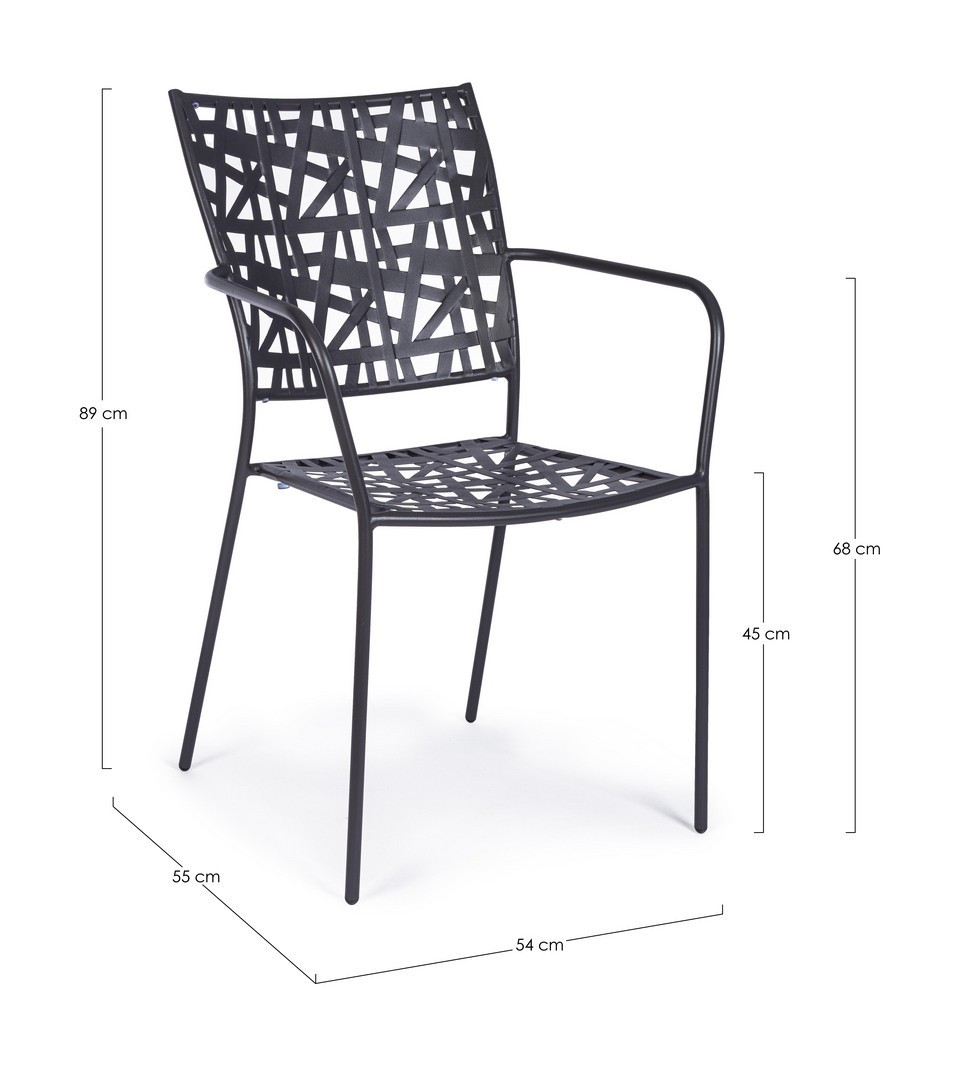 ACCIAIO TRATTATO PER ESTERNO (E-COATING) E VERNICIATO A POLVERE (POLIESTERE) CON FINITURA OPACA. IMPILABILE. IMBALLO SENZA CARTONE.