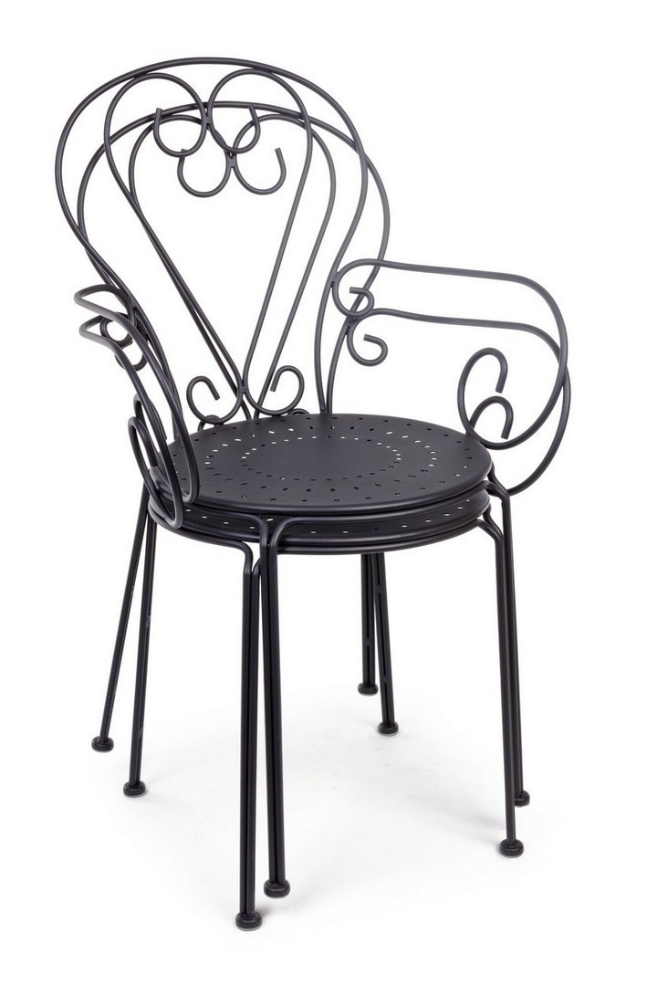 ACCIAIO TRATTATO PER ESTERNO (E-COATING) E VERNICIATO A POLVERE (POLIESTERE) CON FINITURA OPACA. IMPILABILE. IMBALLO SENZA CARTONE.