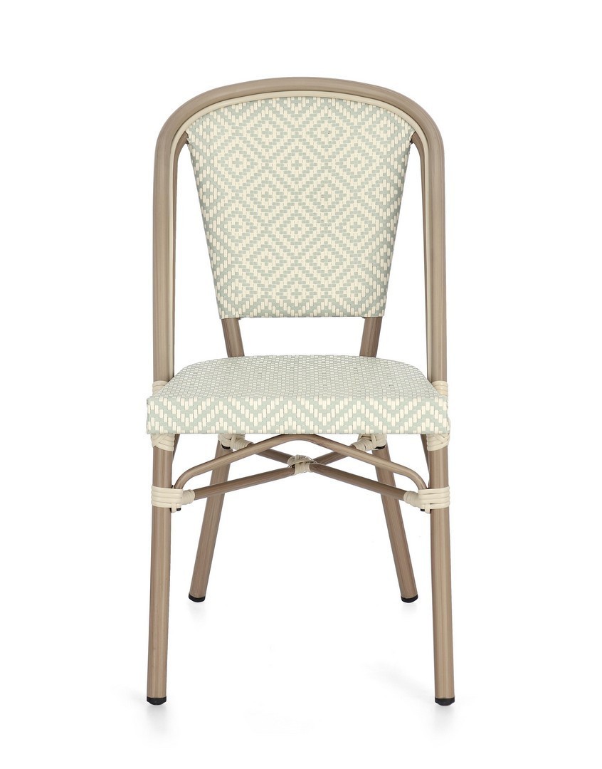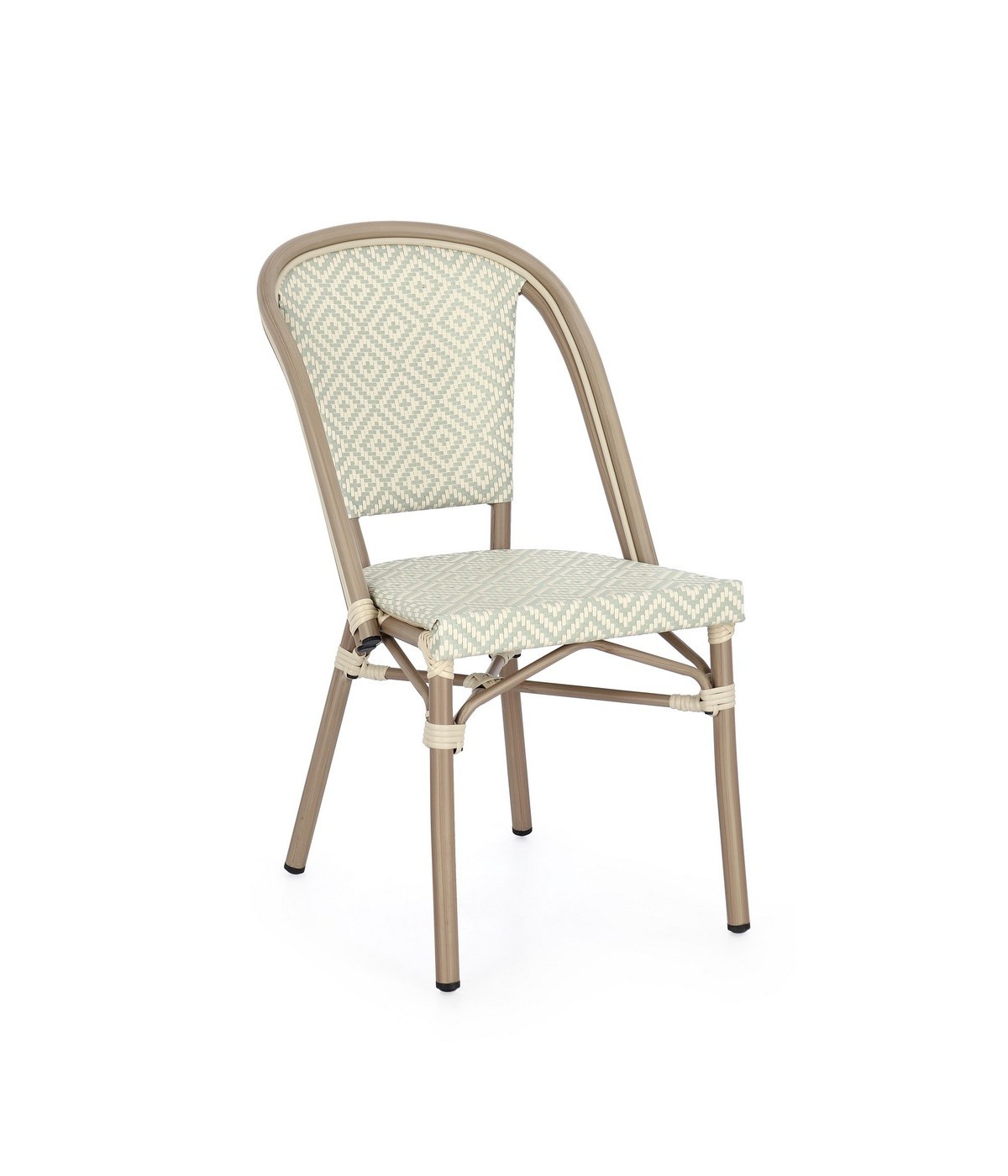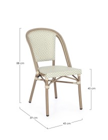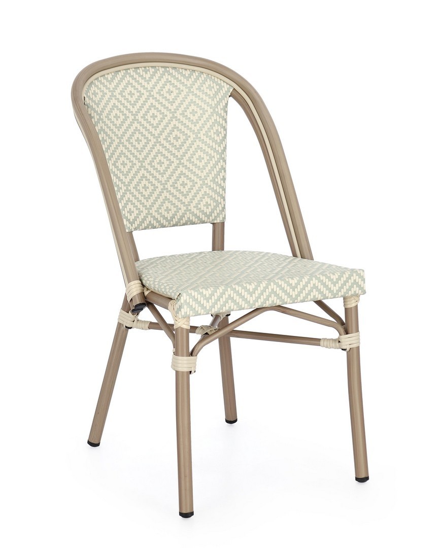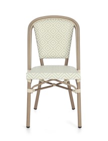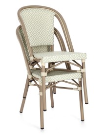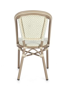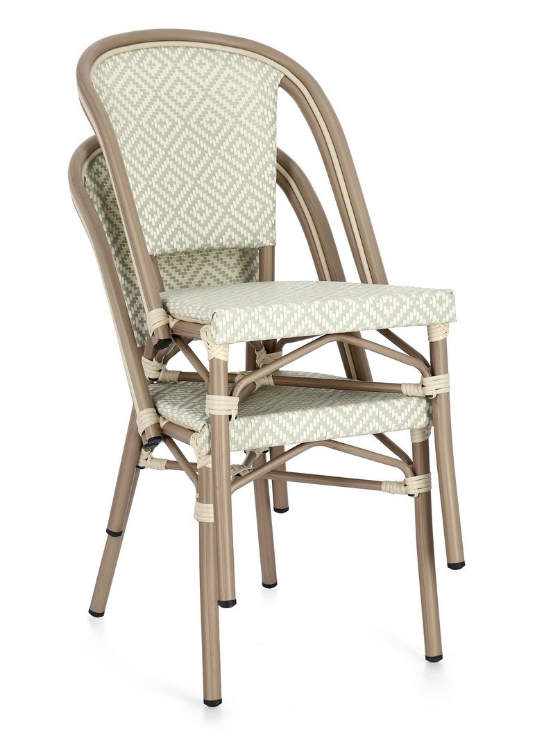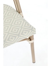 STRUTTURA IN ALLUMINIO VERNICIATA A POLVERE (POLIESTERE), EFFETTO NATURALE. SEDUTA E SCHIENALE IN TEXTILENE. IMPILABILE. IMBALLO SENZA CARTONE.