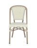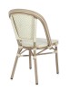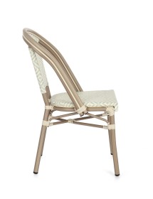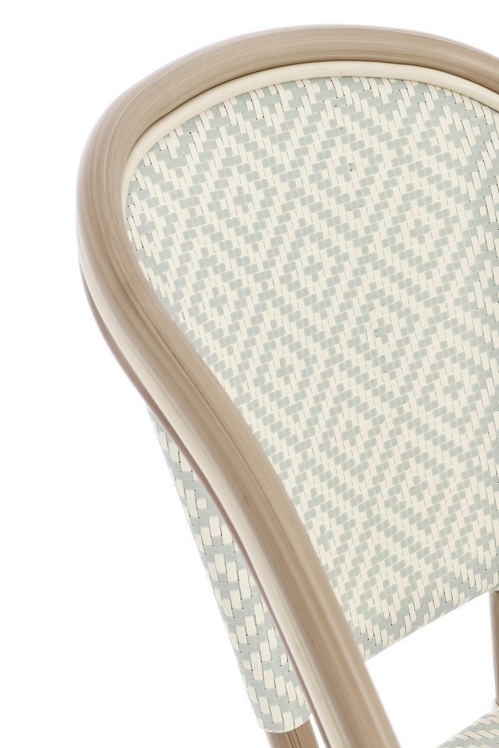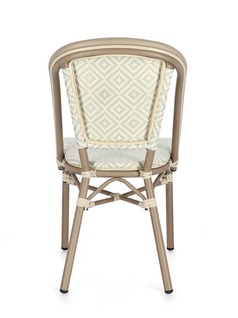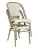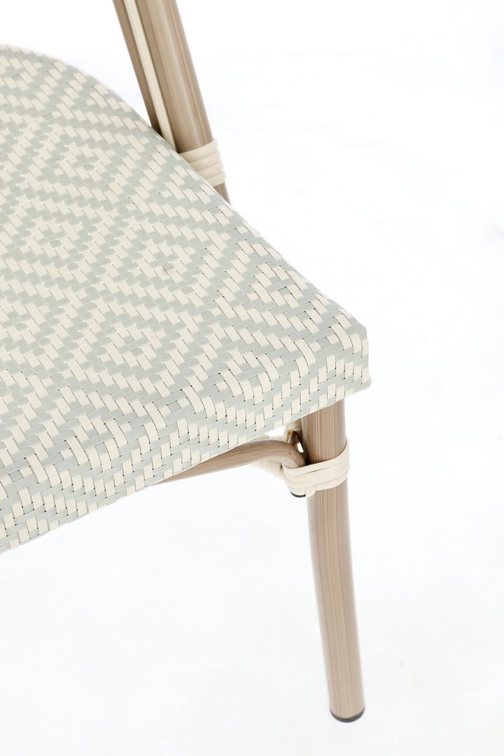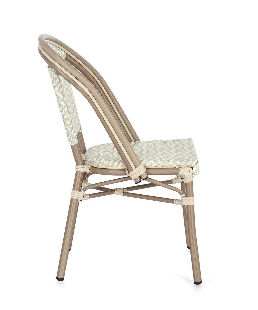 STRUTTURA IN ALLUMINIO VERNICIATA A POLVERE (POLIESTERE), EFFETTO NATURALE. SEDUTA E SCHIENALE IN TEXTILENE. IMPILABILE. IMBALLO SENZA CARTONE.