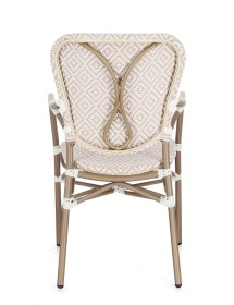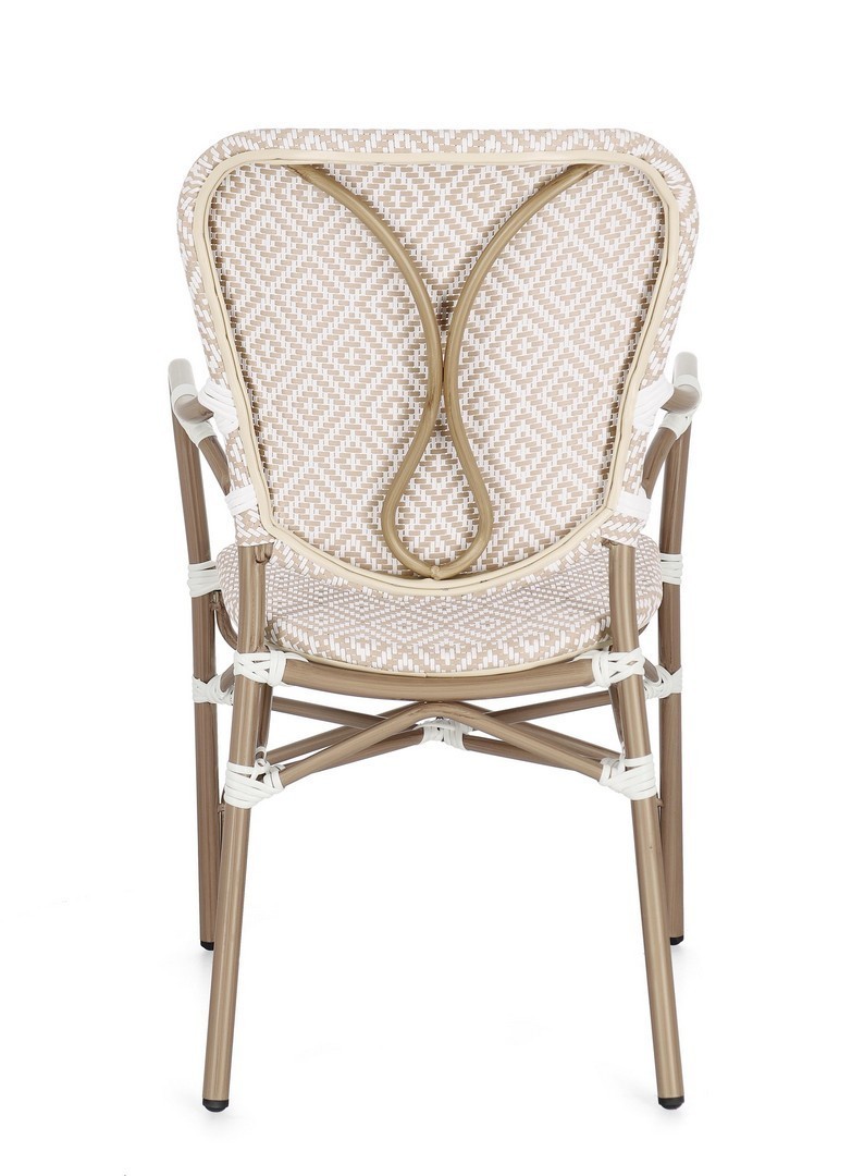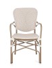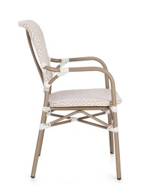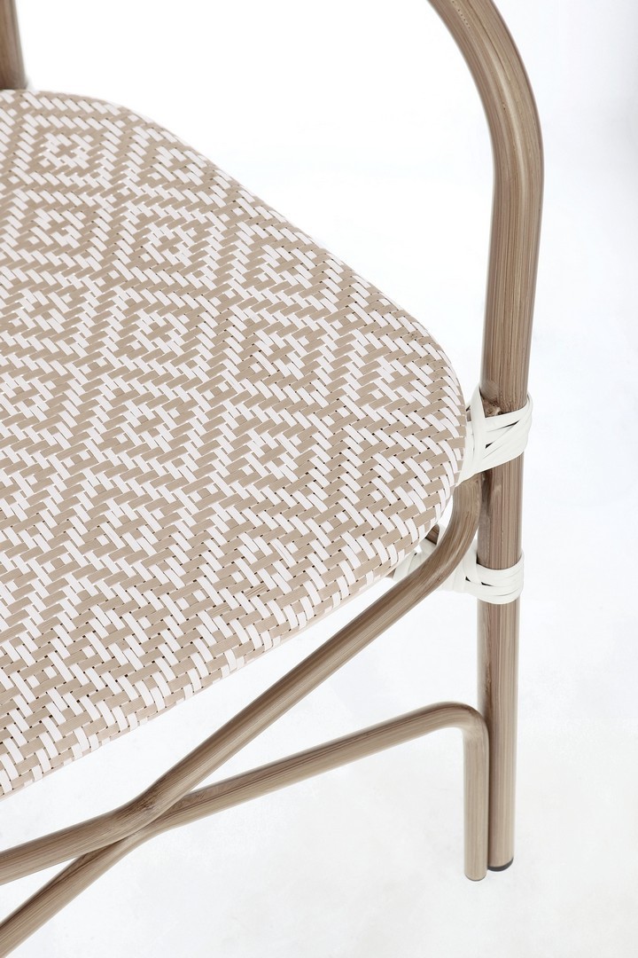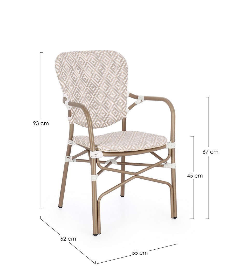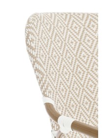 STRUTTURA IN ALLUMINIO VERNICIATA A POLVERE (POLIESTERE), EFFETTO NATURALE. SEDUTA E SCHIENALE IN TEXTILENE. IMPILABILE. IMBALLO SENZA CARTONE.
