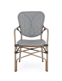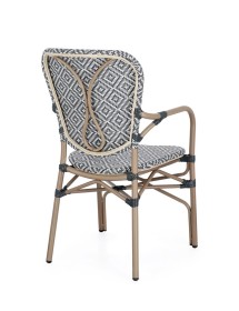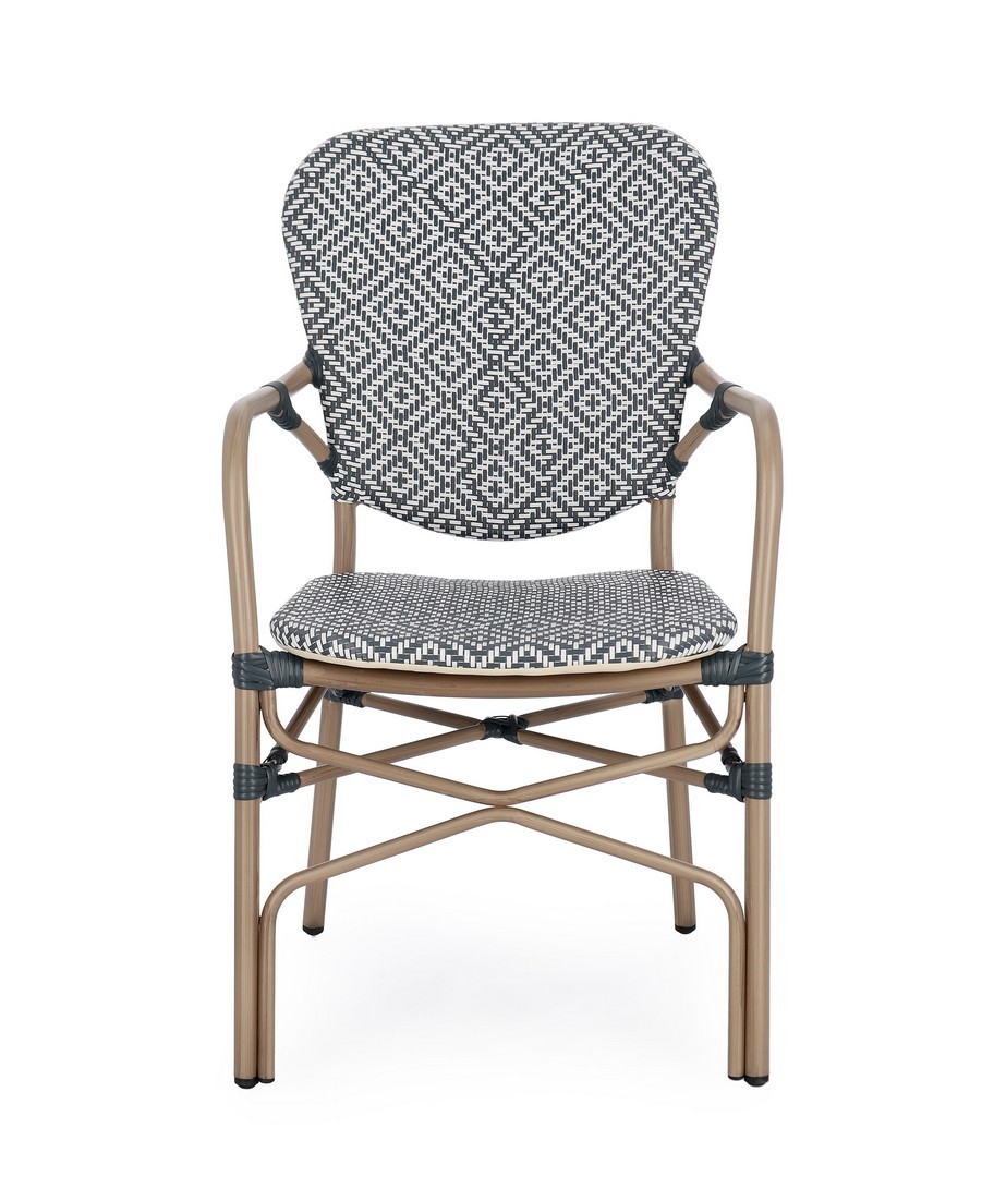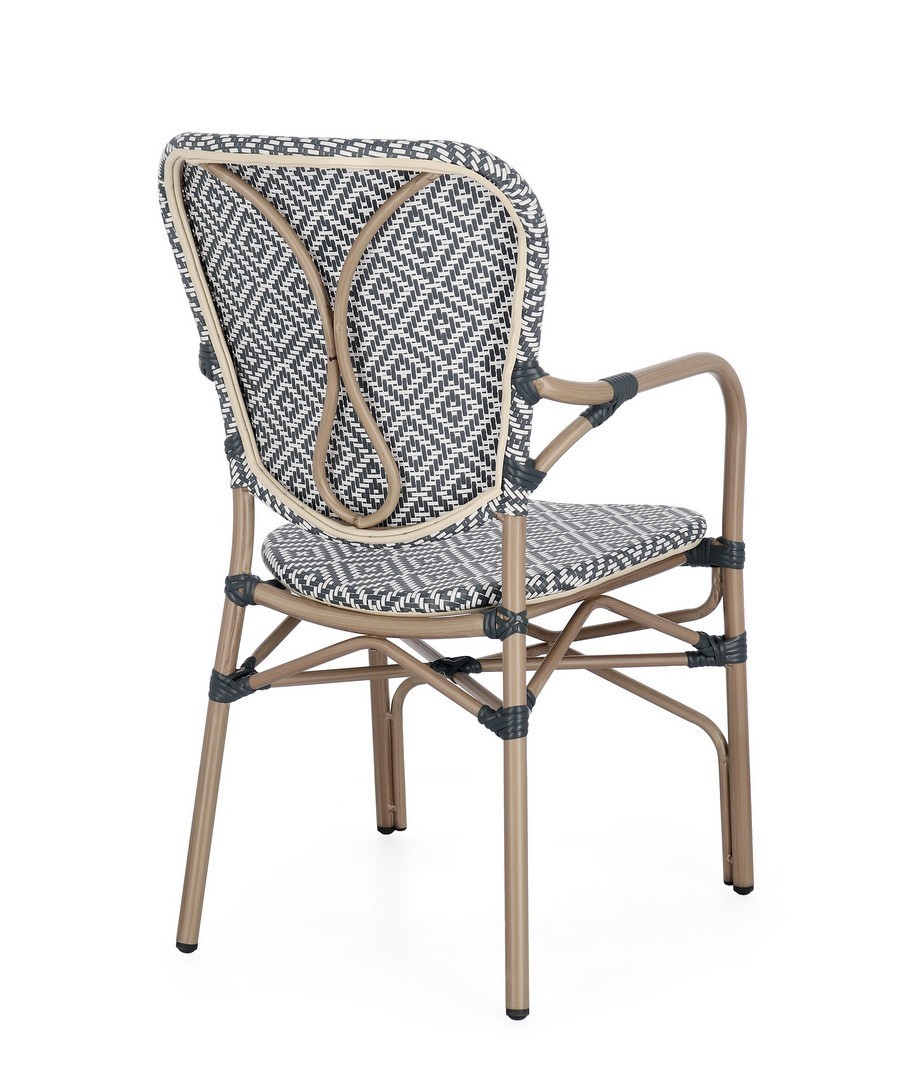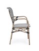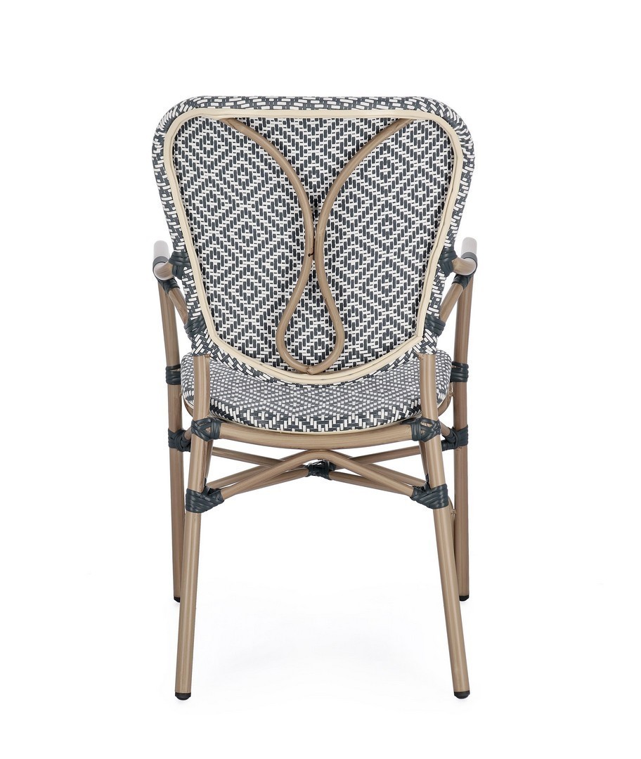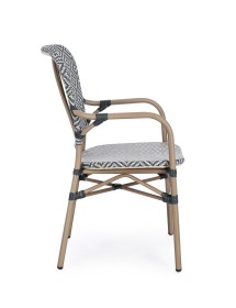 STRUTTURA IN ALLUMINIO VERNICIATA A POLVERE (POLIESTERE), EFFETTO NATURALE. SEDUTA E SCHIENALE IN TEXTILENE. IMPILABILE. IMBALLO SENZA CARTONE.