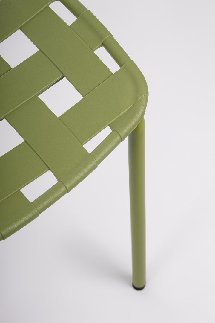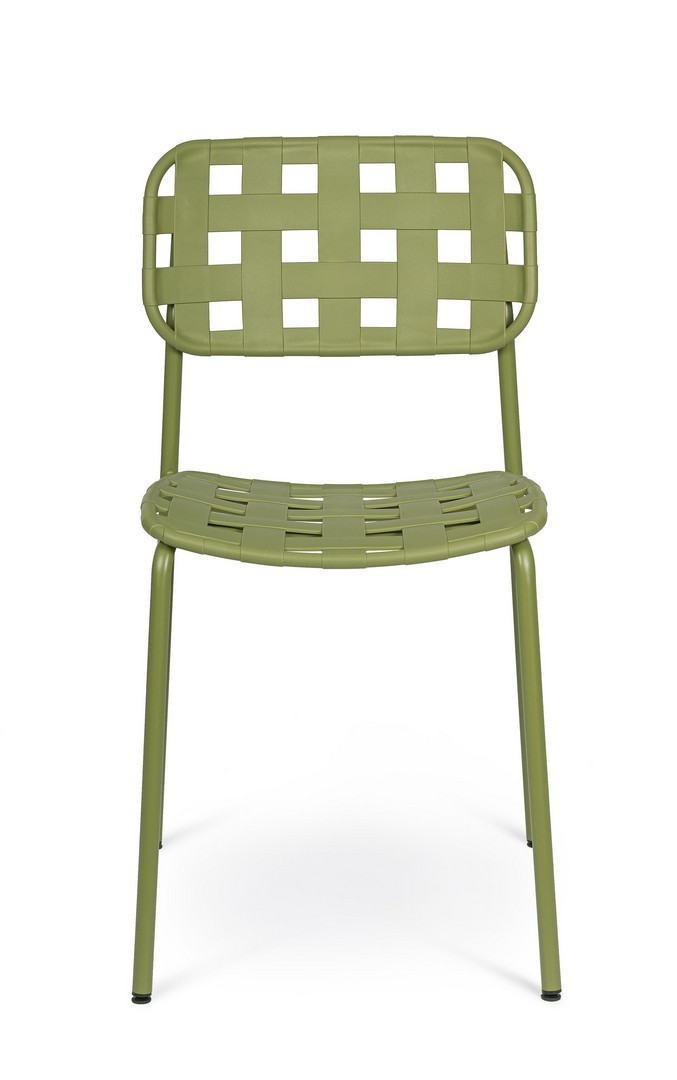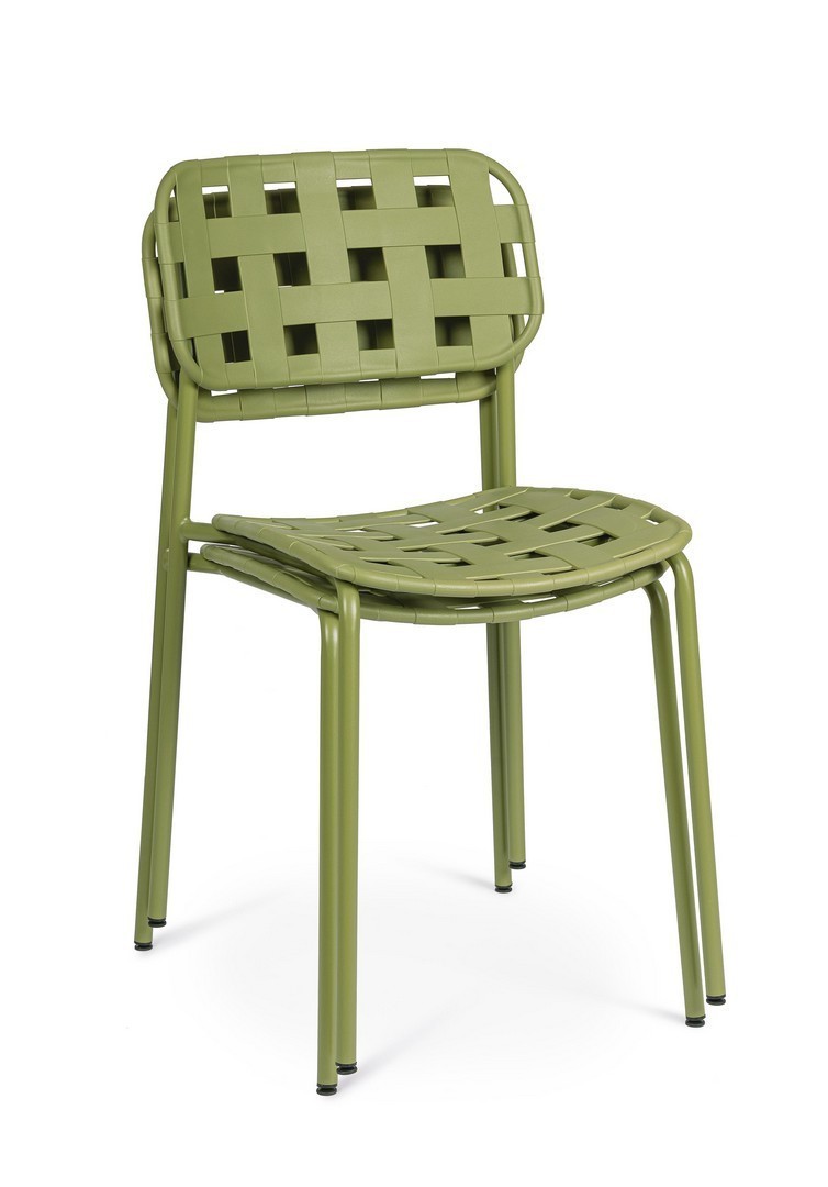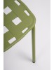 STRUTTURA IN ACCIAIO (TRATTATO PER ESTERNO TRAMITE FOSFATAZIONE) E VERNICIATO A POLVERE (POLIESTERE). SEDUTA E SCHIENALE IN POLIPROPILENE, RESISTENTE AI RAGGI UV. IMPILABILE. DA ASSEMBLARE.