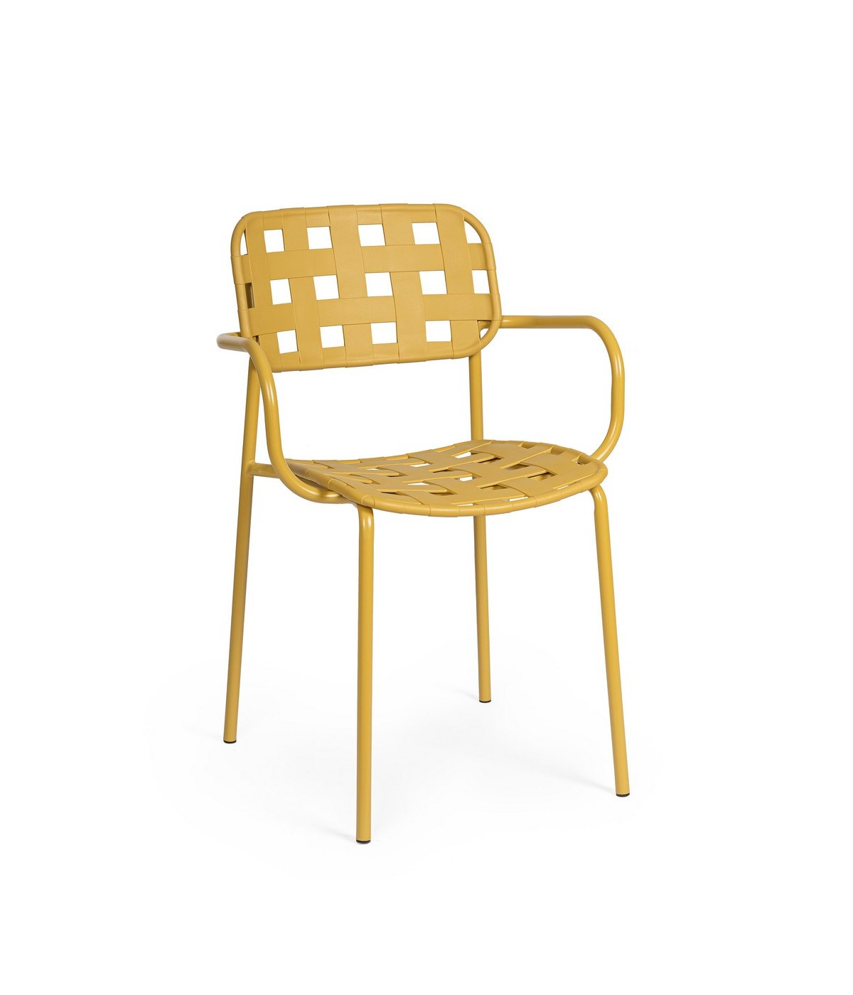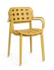 STRUTTURA IN ACCIAIO (TRATTATO PER ESTERNO TRAMITE FOSFATAZIONE) E VERNICIATO A POLVERE (POLIESTERE). SEDUTA E SCHIENALE IN POLIPROPILENE, RESISTENTE AI RAGGI UV. IMPILABILE. DA ASSEMBLARE.