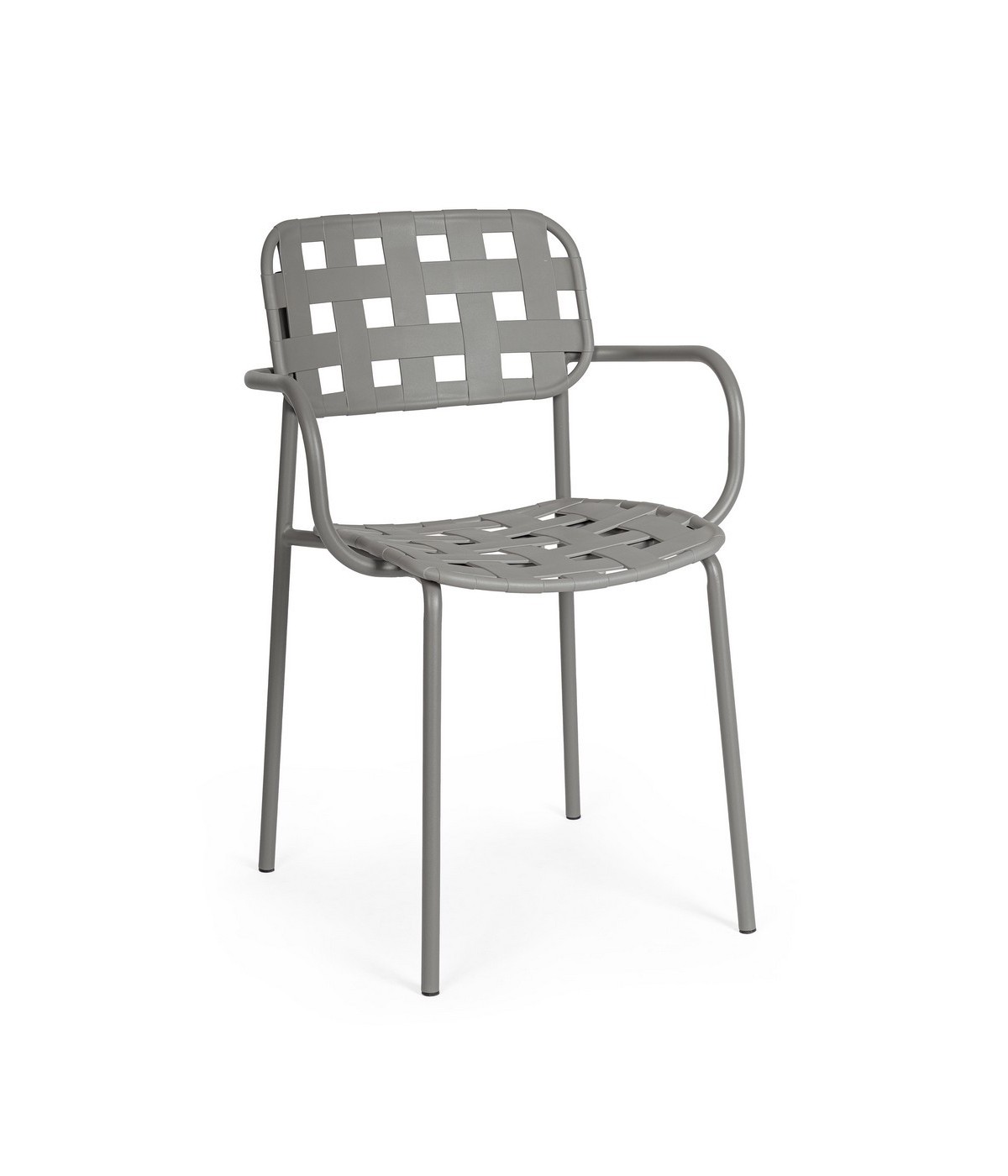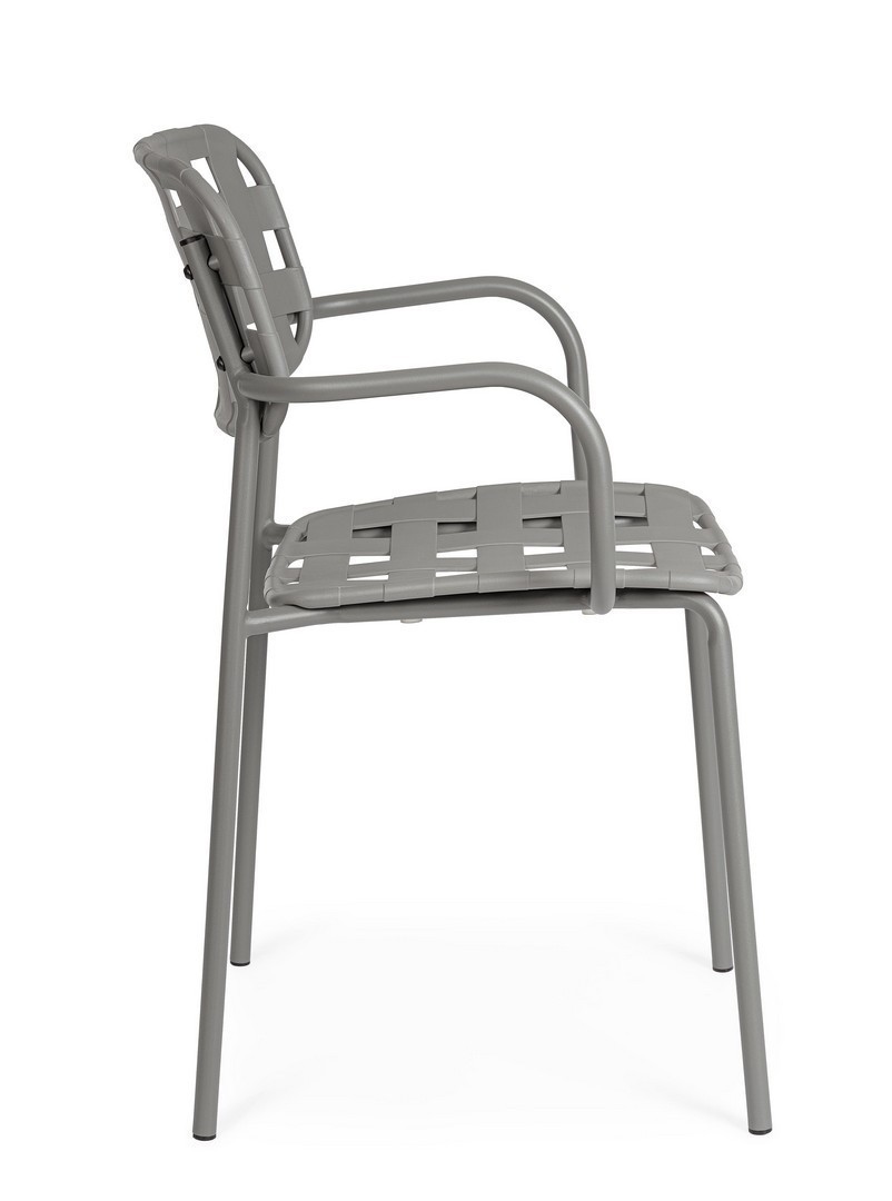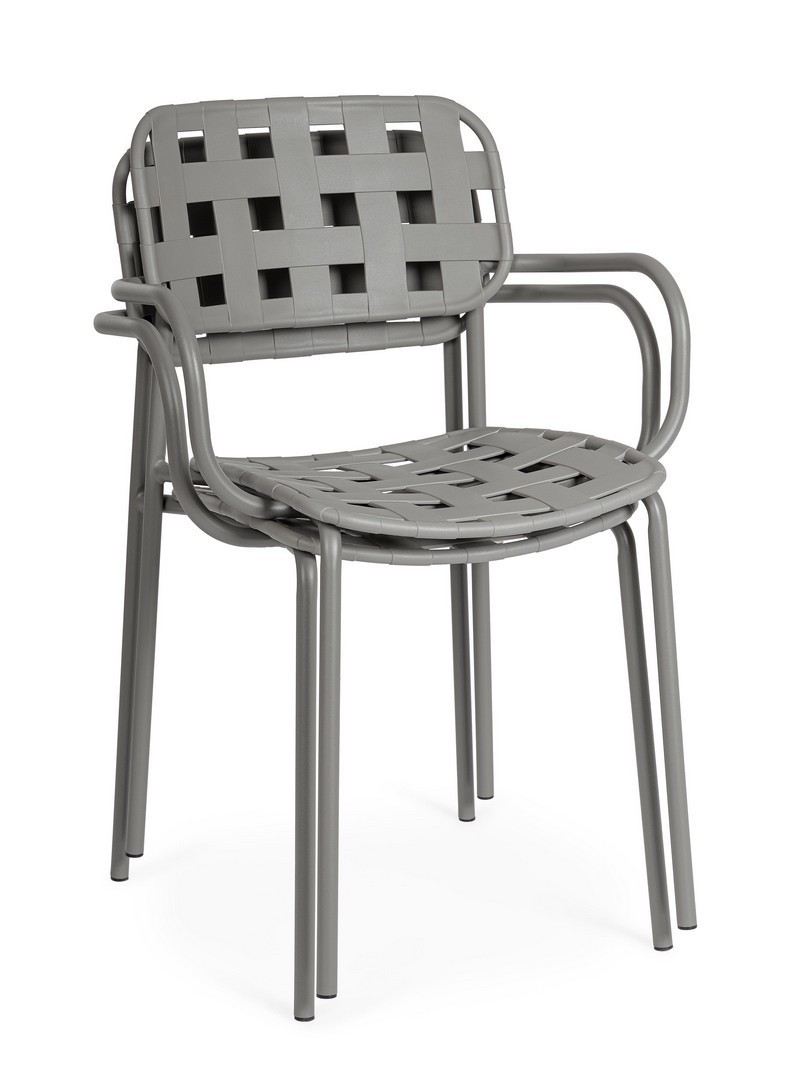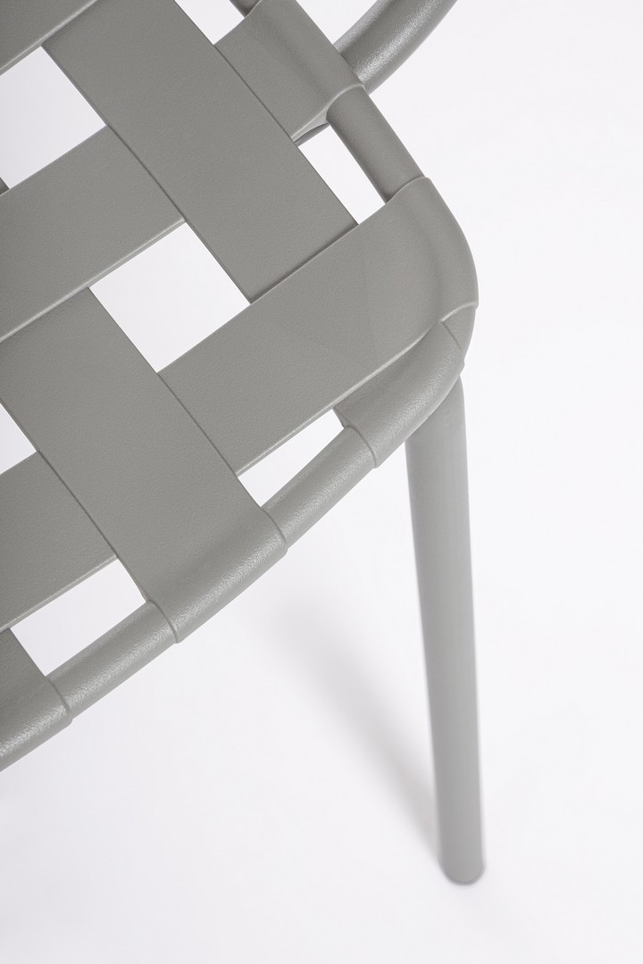 STRUTTURA IN ACCIAIO (TRATTATO PER ESTERNO TRAMITE FOSFATAZIONE) E VERNICIATO A POLVERE (POLIESTERE). SEDUTA E SCHIENALE IN POLIPROPILENE, RESISTENTE AI RAGGI UV. IMPILABILE. DA ASSEMBLARE.