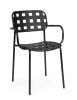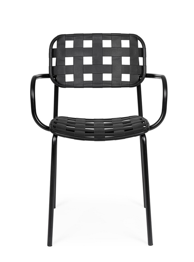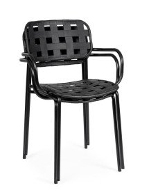 STRUTTURA IN ACCIAIO (TRATTATO PER ESTERNO TRAMITE FOSFATAZIONE) E VERNICIATO A POLVERE (POLIESTERE). SEDUTA E SCHIENALE IN POLIPROPILENE, RESISTENTE AI RAGGI UV. IMPILABILE. DA ASSEMBLARE.