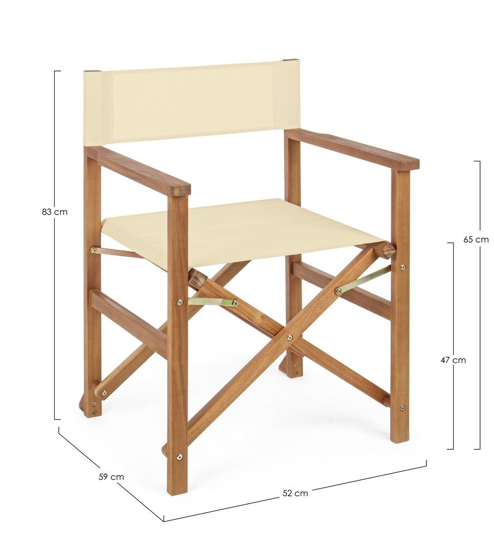 LEGNO DI ACACIA CON FINITURA AD OLIO. VITERIA IN ACCIAIO GALVANIZZATO. TESSUTO POLIESTERE 230GR IDROREPELLENTE.