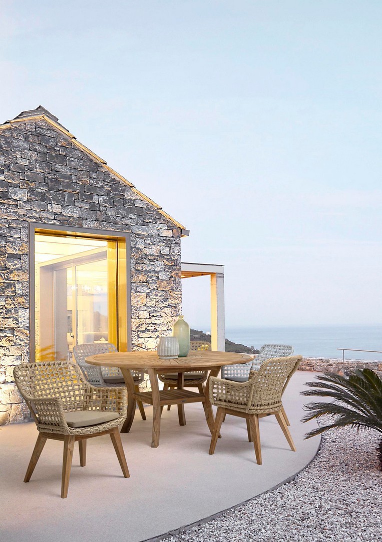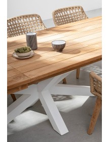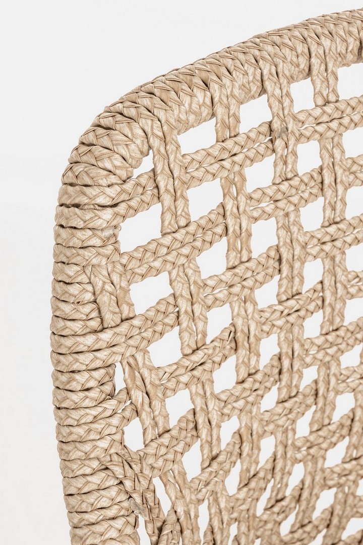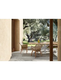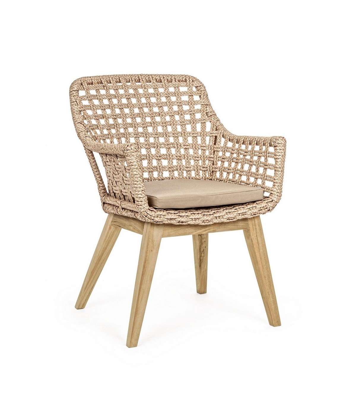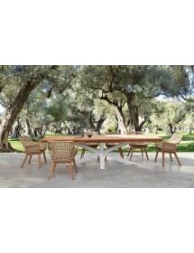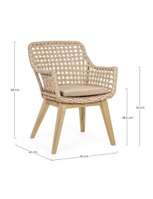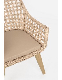 SEDUTA CON STRUTTURA IN ALLUMINIO VERNICIATA A POLVERE (POLIESTERE). INTRECCIO IN FIBRA SINTETICA VIRO CON ORIGINALE PIEGATURA A TRECCIA (EFFETTO PELLE). CUSCINO SEDUTA SFODERABILE IN TESSUTO IDROREPELLENTE SUNPROOF OLEFIN (100% POLIPROPILENE). GAMBE IN TEAK - SVLK (LEGNO CERTIFICATO PROVENIENTE DA FORESTE SOSTENIBILI). VITERIA IN ACCIAIO GALVANIZZATO. GAMBE DA ASSEMBLARE. ATTENZIONE: PRIMA DI PROCEDERE AL MONTAGGIO, ASSICURARSI CHE LA NUMERAZIONE SEDUTA-GAMBE COINCIDA.