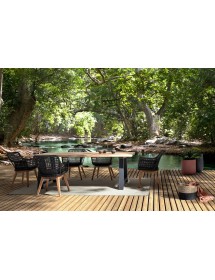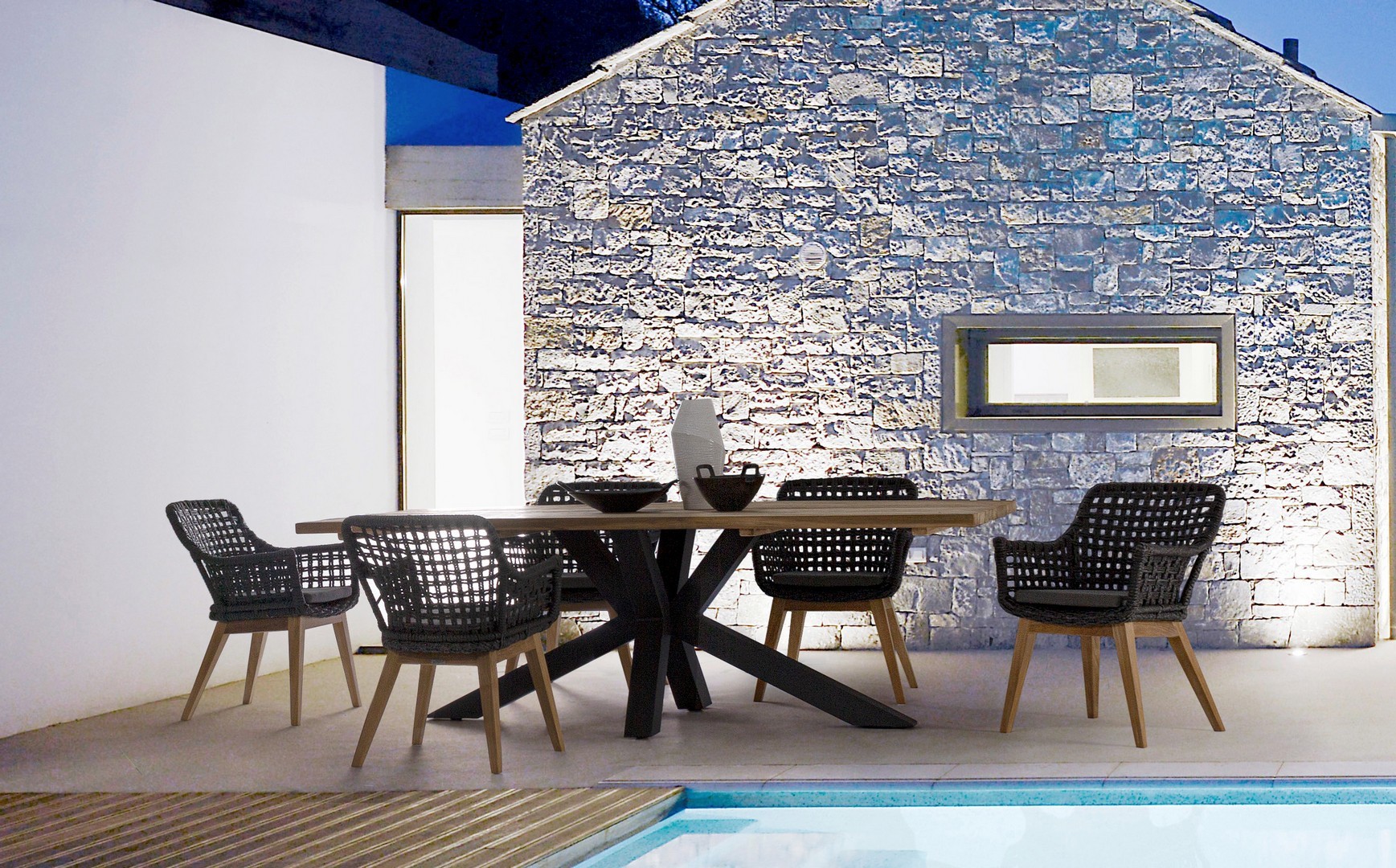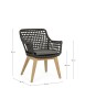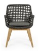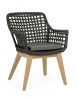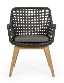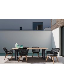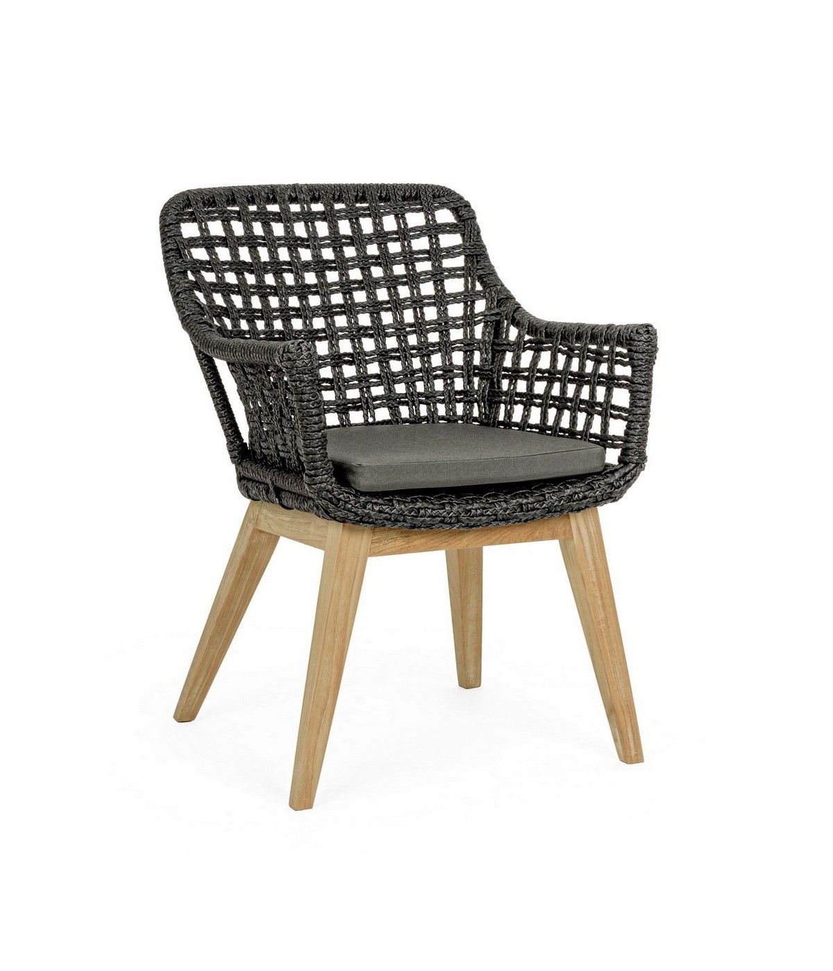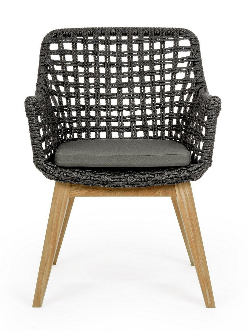 SEDUTA CON STRUTTURA IN ALLUMINIO VERNICIATA A POLVERE (POLIESTERE). INTRECCIO IN FIBRA SINTETICA VIRO CON ORIGINALE PIEGATURA A TRECCIA (EFFETTO PELLE). CUSCINO SEDUTA SFODERABILE IN TESSUTO IDROREPELLENTE SUNPROOF OLEFIN (100% POLIPROPILENE). GAMBE IN TEAK - SVLK (LEGNO CERTIFICATO PROVENIENTE DA FORESTE SOSTENIBILI). VITERIA IN ACCIAIO GALVANIZZATO. GAMBE DA ASSEMBLARE. ATTENZIONE: PRIMA DI PROCEDERE AL MONTAGGIO, ASSICURARSI CHE LA NUMERAZIONE SEDUTA-GAMBE COINCIDA.