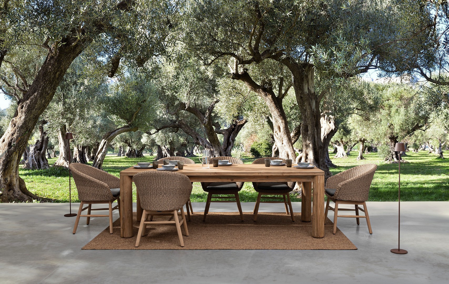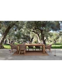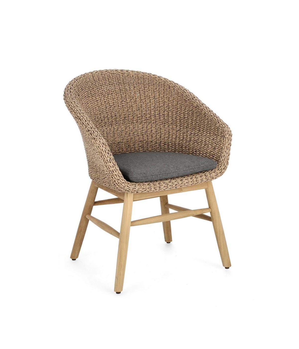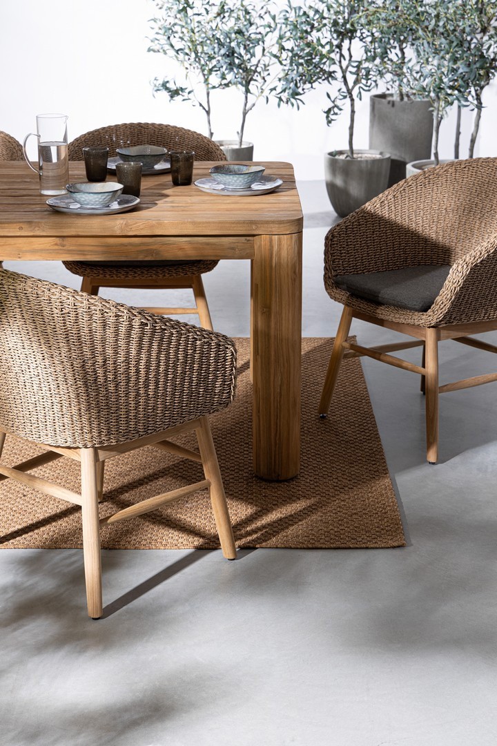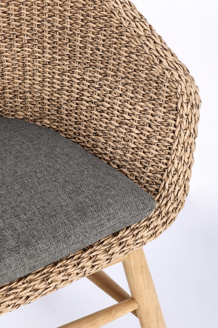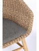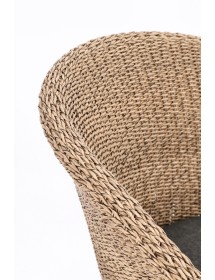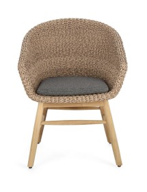 SEDUTA CON STRUTTURA IN ALLUMINIO VERNICIATA A POLVERE (POLIESTERE). INTRECCIO IN FIBRA SINTETICA EFFETTO ABACA. CUSCINO SEDUTA SFODERABILE IN TESSUTO IDROREPELLENTE SUNPROOF OLEFIN (100% POLIPROPILENE). GAMBE IN TEAK - SVLK (LEGNO CERTIFICATO PROVENIENTE DA FORESTE SOSTENIBILI). VITERIA IN ACCIAIO GALVANIZZATO. GAMBE DA ASSEMBLARE. ATTENZIONE: PRIMA DI PROCEDERE AL MONTAGGIO, ASSICURARSI CHE LA NUMERAZIONE SEDUTA-GAMBE COINCIDA.