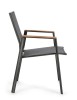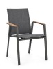 STRUTTURA IN ALLUMINIO, VERNICIATO A POLVERE (POLIESTERE). BRACCIOLI CON INSERTI IN TEAK. SEDUTA E SCHIENALE RIVESTITI IN TEXTILENE PHIFER 1X1. IMPILABILE. IMBALLO SENZA CARTONE.