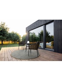 STRUTTURA E GAMBE IN ALLUMINIO VERNICIATE A POLVERE (POLIESTERE). SEDUTA RIVESTITA IN FIBRA SINTETICA (TONDA 9MM). CUSCINI SEDUTA E SCHIENALE SFODERABILI CON TESSUTO IDROREPELLENTE OLEFIN (100% POLIPROPILENE). IMPILABILE.